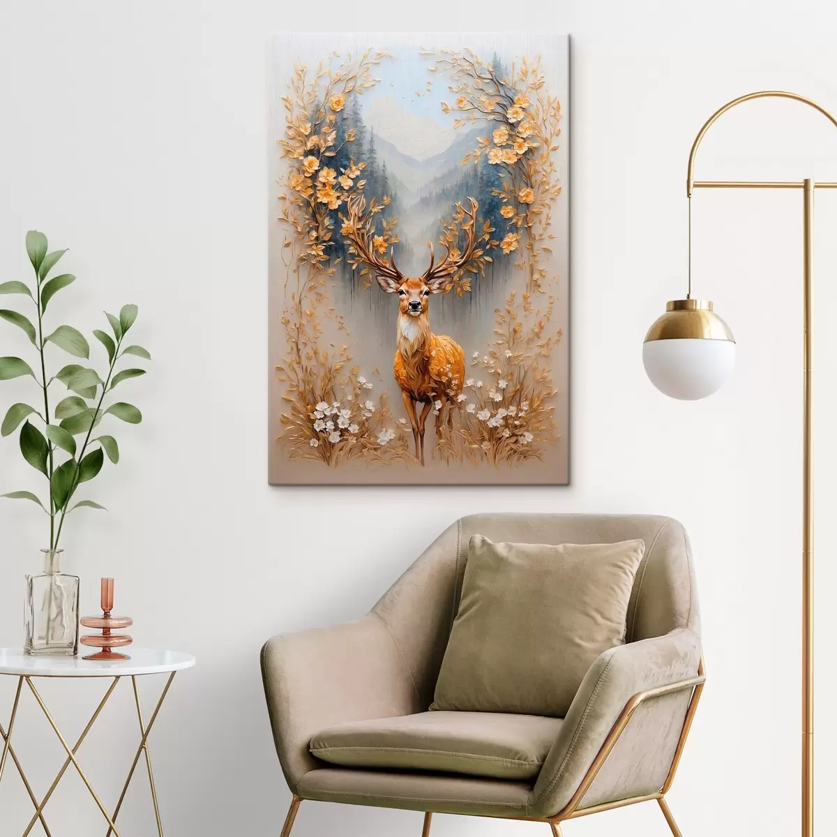 Glezna Briedis ar lieliem ragiem uz meža fona Nr s42252
