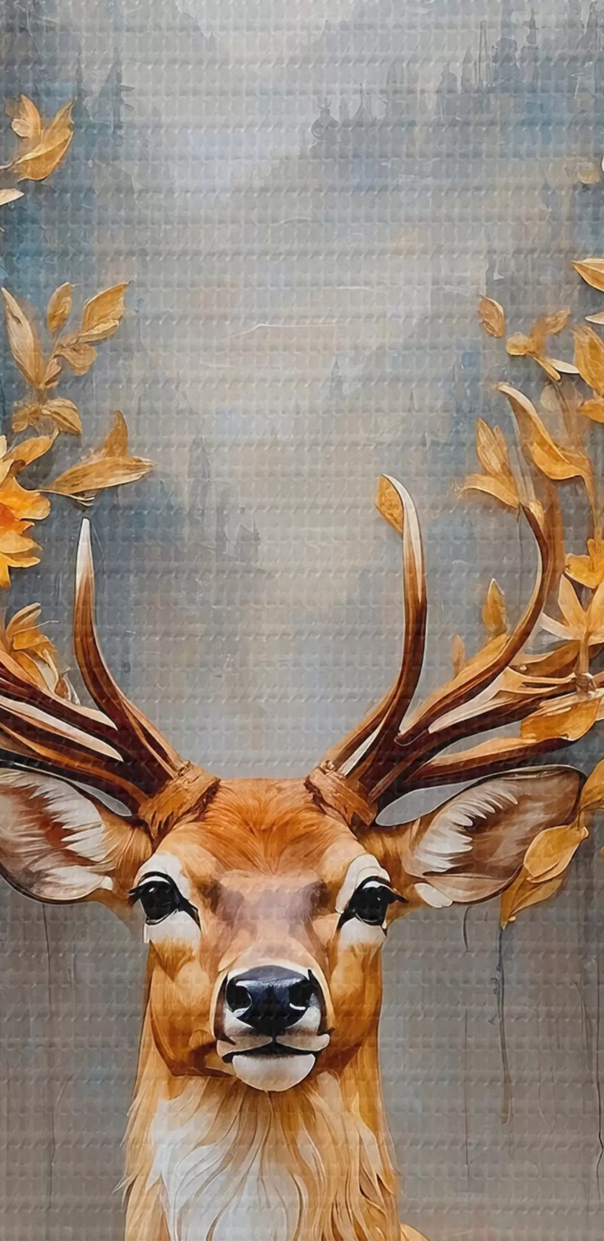 Glezna Briedis ar lieliem ragiem uz meža fona s42252