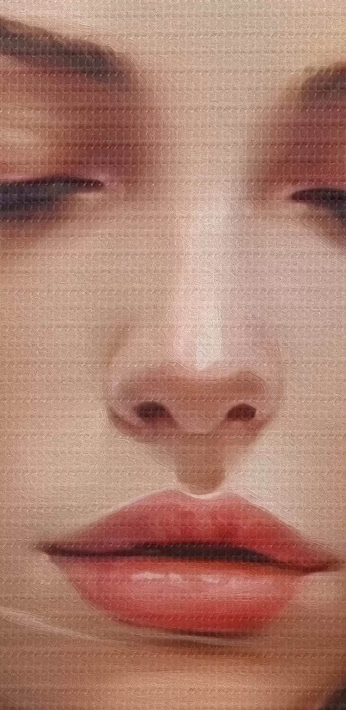 Smalkais diegu pinums uz šī audekla atgādina profesionālu mākslinieku audeklu virsmu.