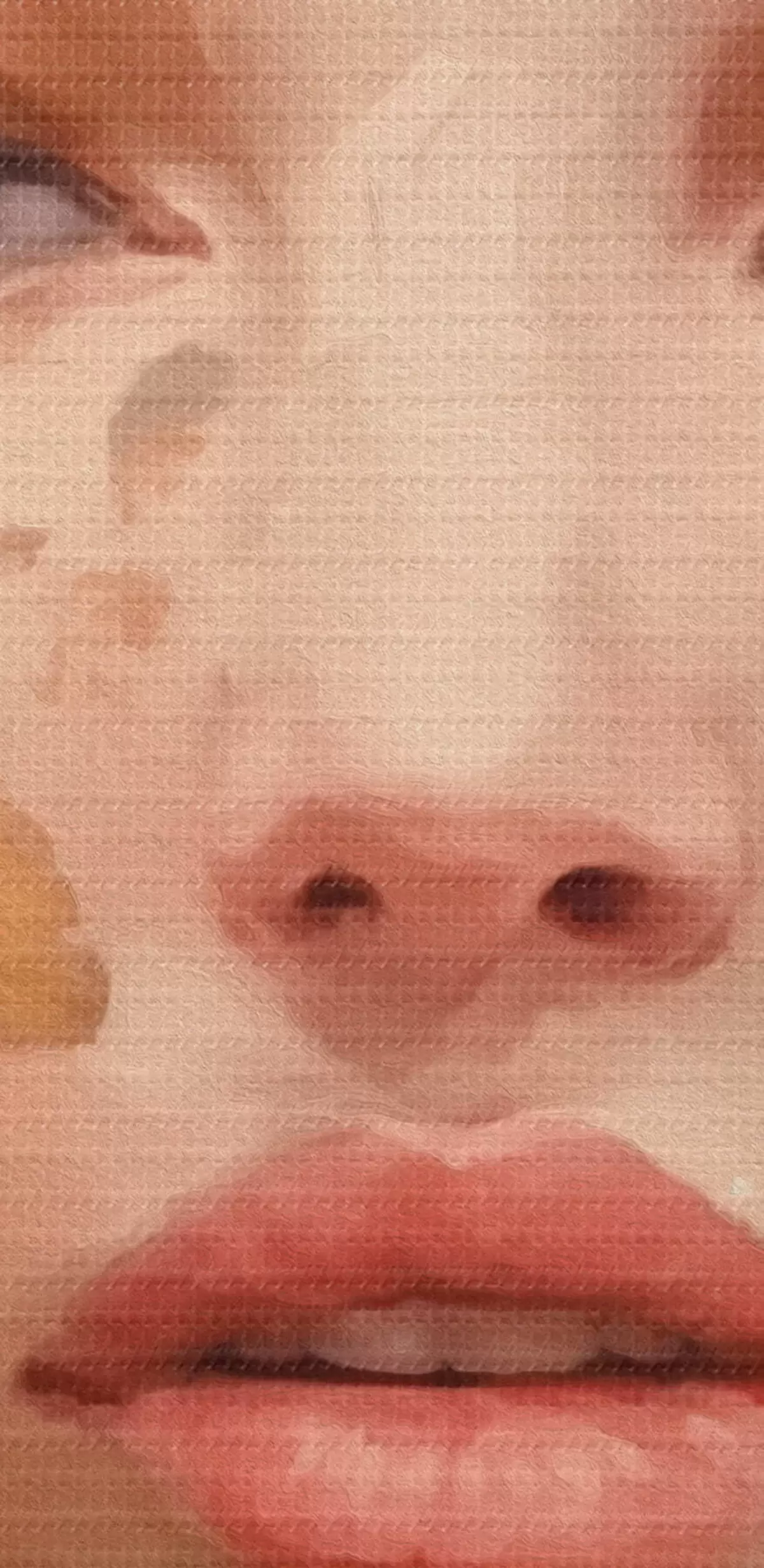 Smalkais diegu pinums uz šī audekla atgādina profesionālu mākslinieku audeklu virsmu.