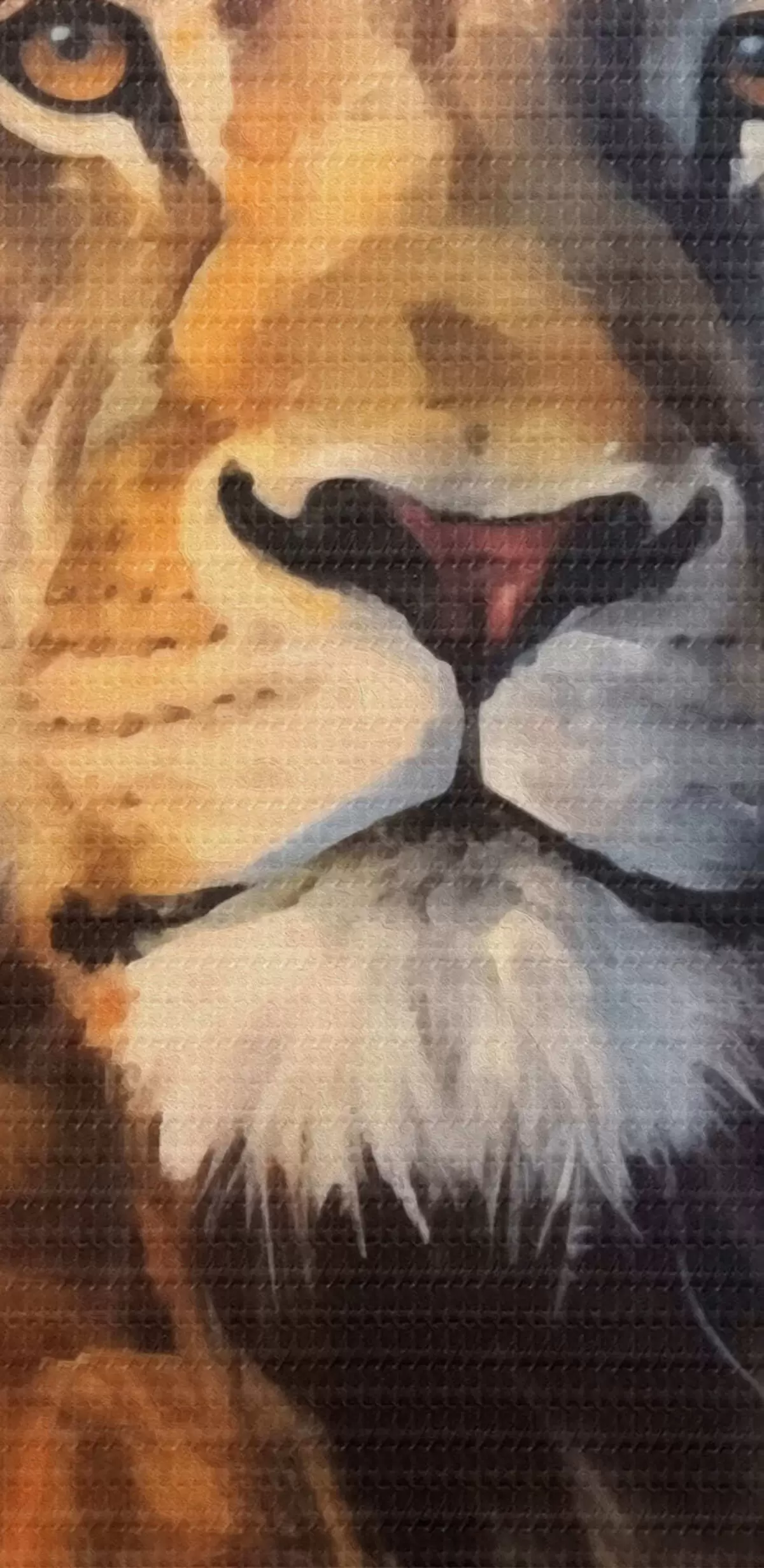 Smalkais diegu pinums uz šī audekla atgādina profesionālu mākslinieku audeklu virsmu.