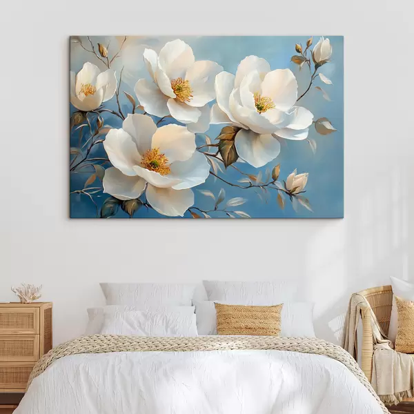 Glezna Lieli balti ziedi uz zila fona s42321