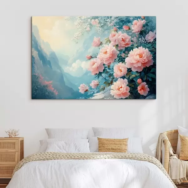 Glezna Zilie kalni un ziedi priekšplānā Nr s42324