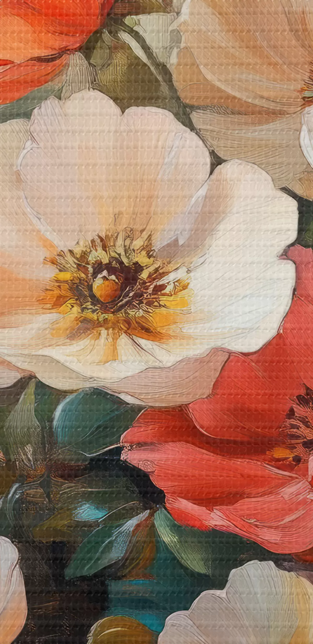 Smalkais diegu pinums uz šī audekla atgādina profesionālu mākslinieku audeklu virsmu.