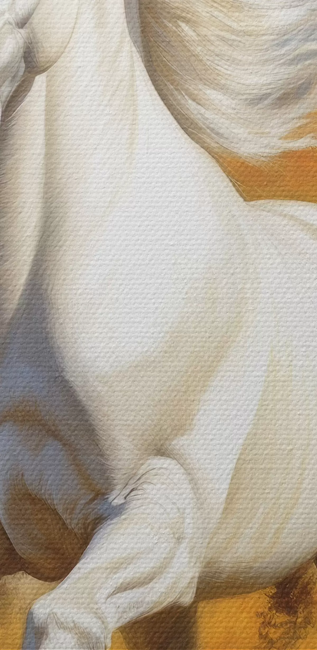 Smalkais diegu pinums uz šī audekla atgādina profesionālu mākslinieku audeklu virsmu.