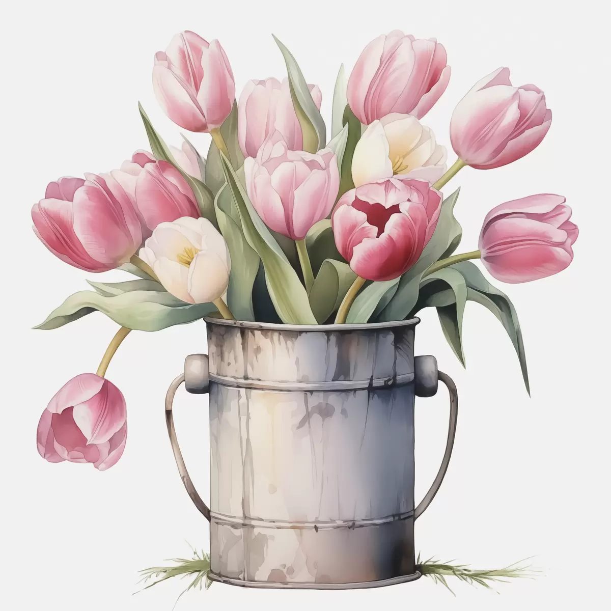 Glezna Tulpju pušķis spainī, kas imitē akvareli Nr s42353