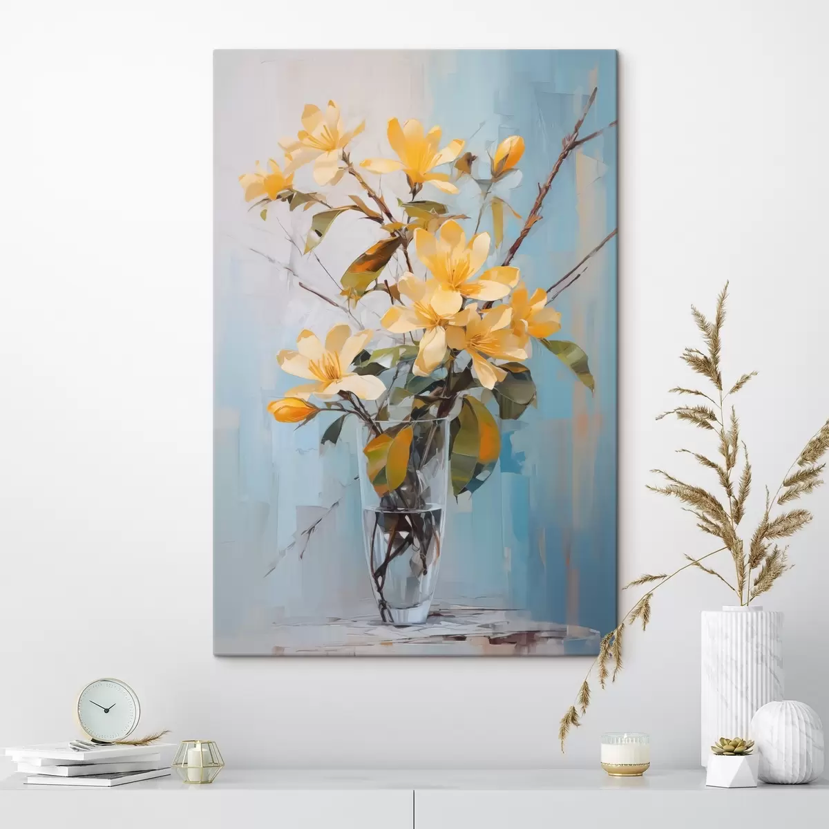 Glezna Zari ar dzelteniem ziediem vāzē, kas imitē glezniecību s42358