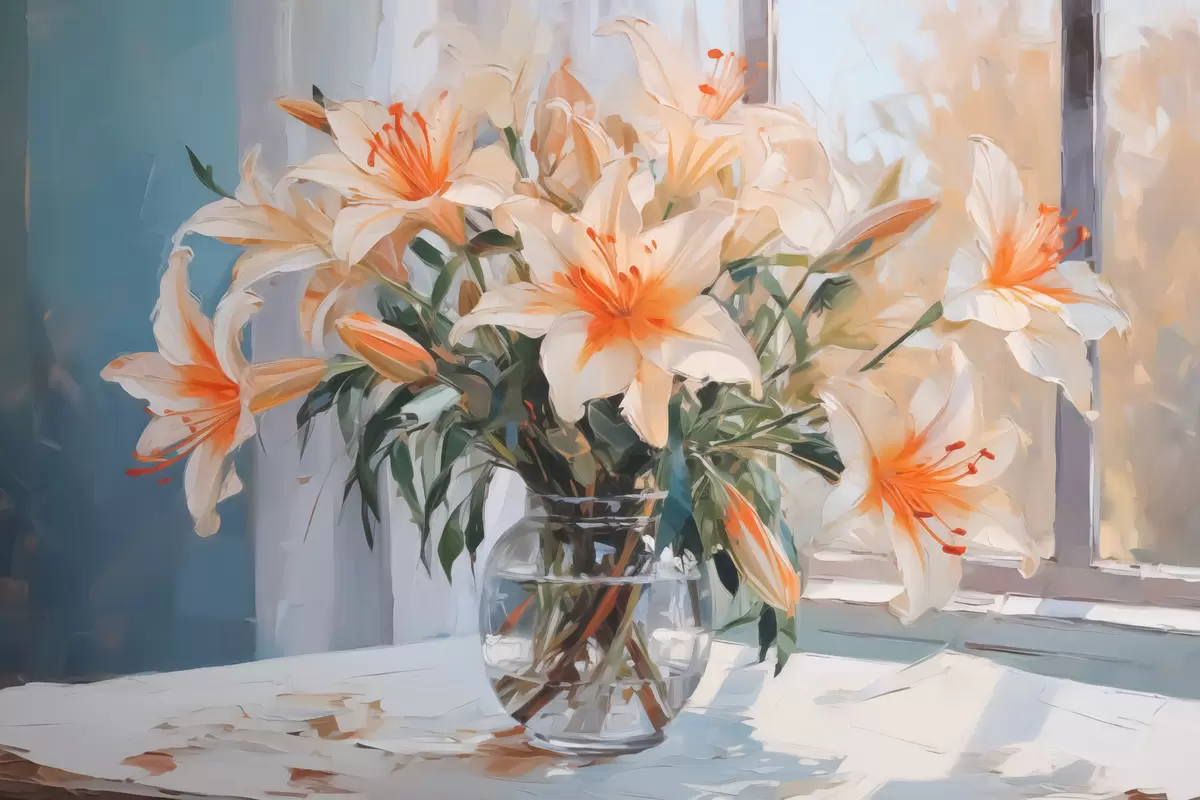 Glezna Lilijas stikla vāzē, kas imitē glezniecību Nr s42359