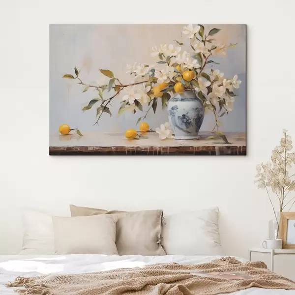 Glezna Vāze ar baltu ziedu zariem un citrona imitācijas gleznojumu s42360