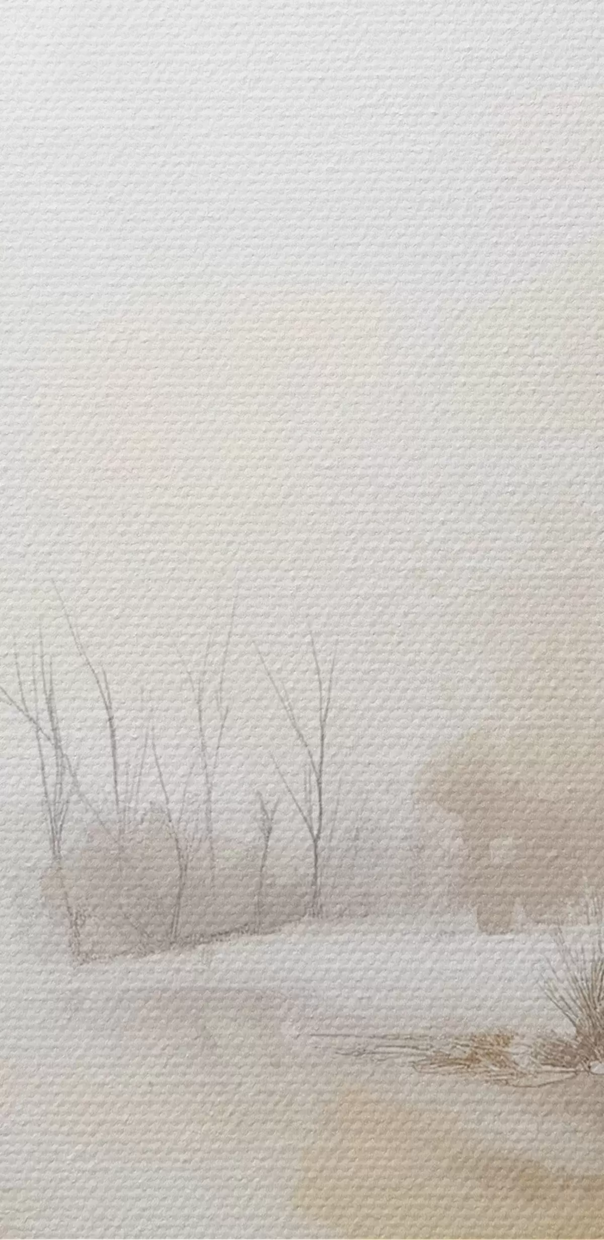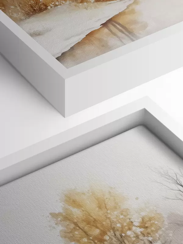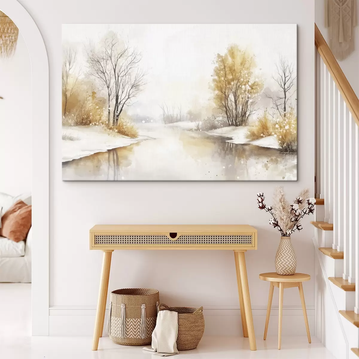 Glezna Ziemas ainava, upe un koki, akvareļu stilā, smilškrāsas krāsas s42376