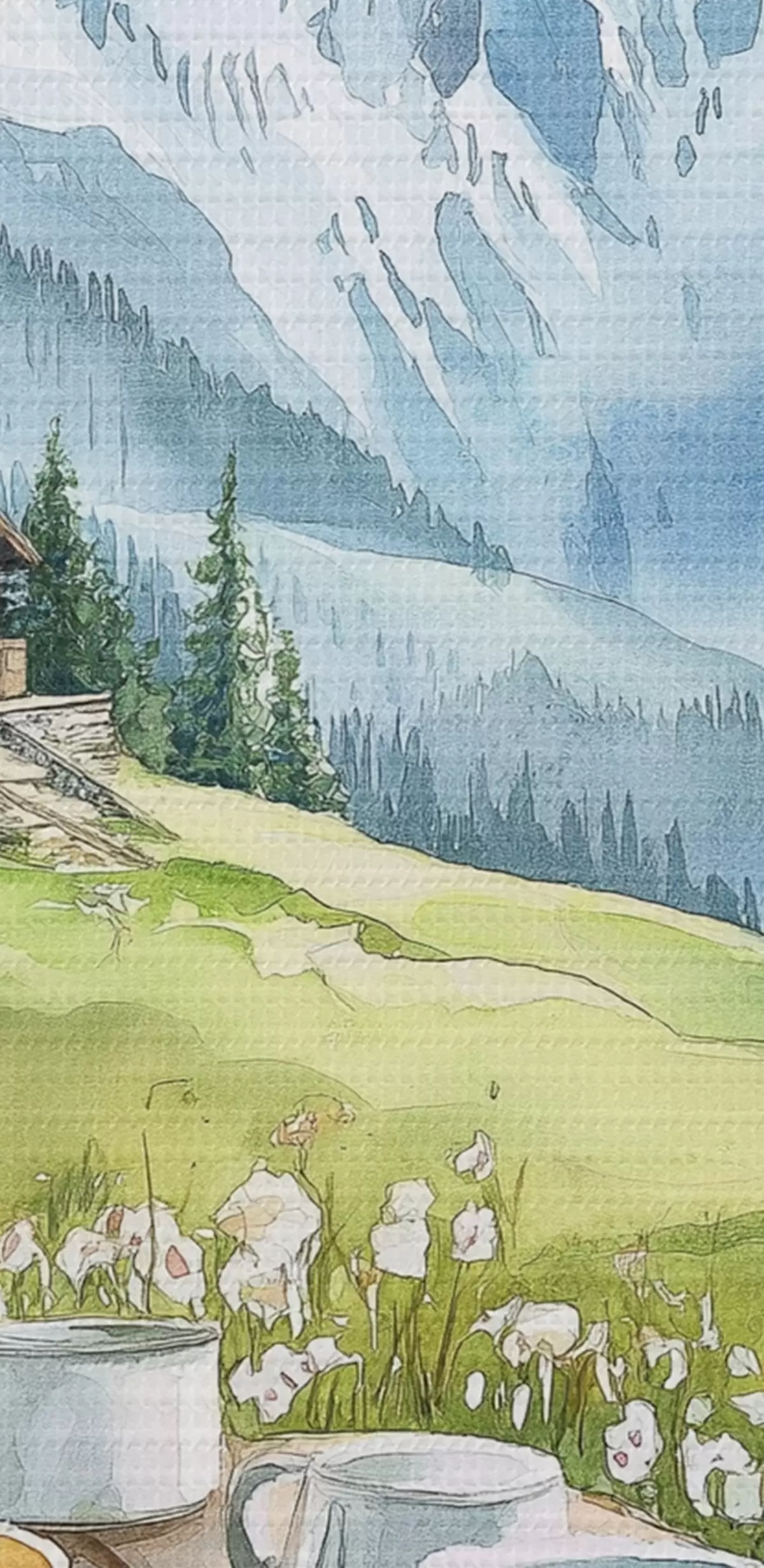 Glezna Brokastis Alpos, kalni, mežs, daba, vasara, akvareļu stils Nr s42426