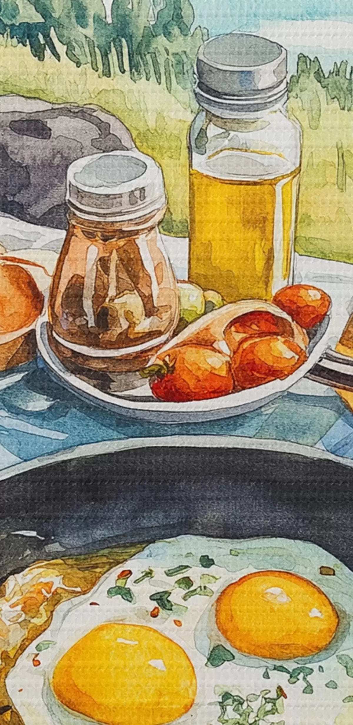 Glezna Estētiskas brokastis pie ezera, akvareļu stilā s42432