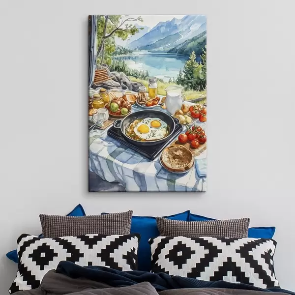 Glezna Estētiskas brokastis pie ezera, akvareļu stilā Nr s42432