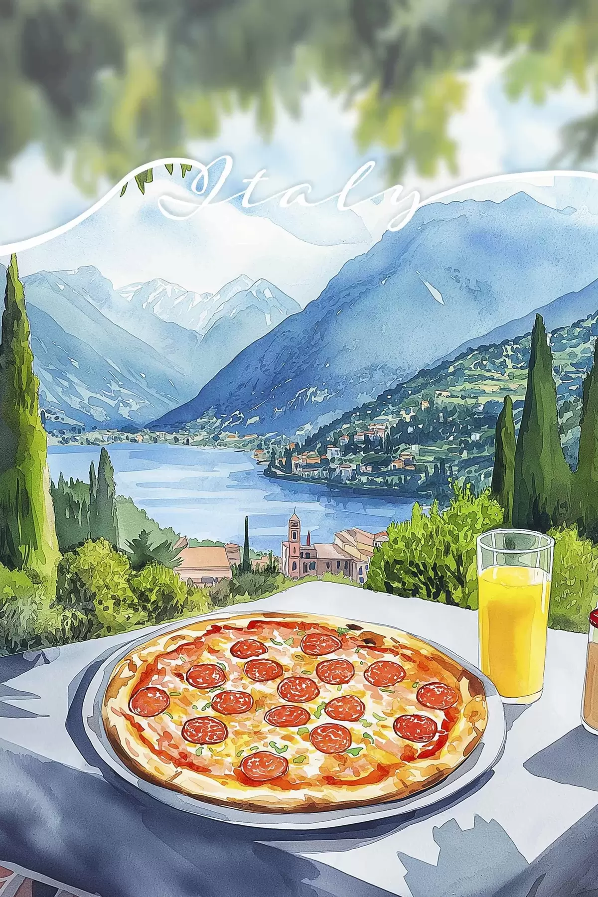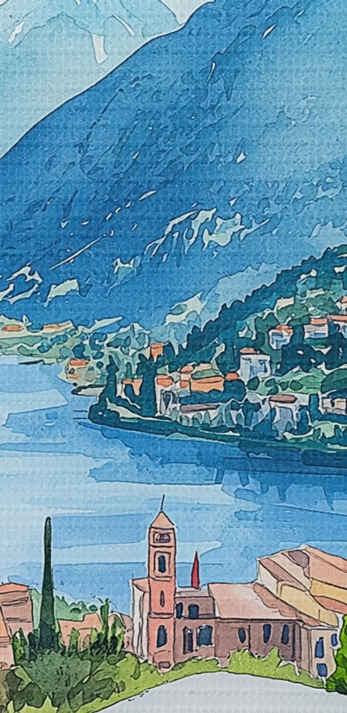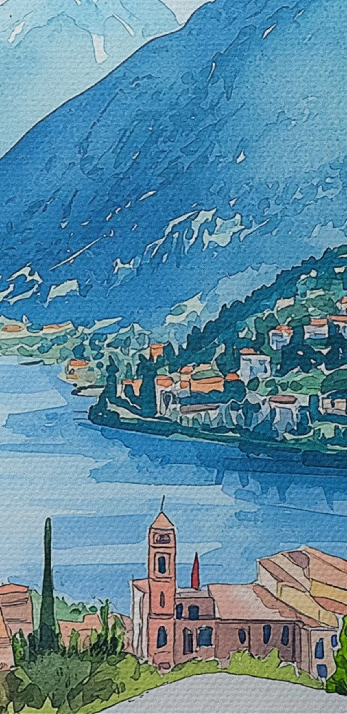Glezna Akvareļu stils, Itālija, pica, vecpilsēta, kalnu ainava s42435