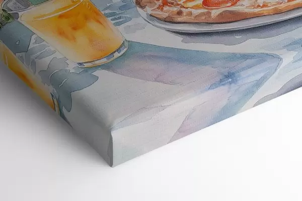 Glezna Vēlās brokastis Itālijā, akvareļu stilā, pica margarita, ezers, vasaras daba Nr s42436