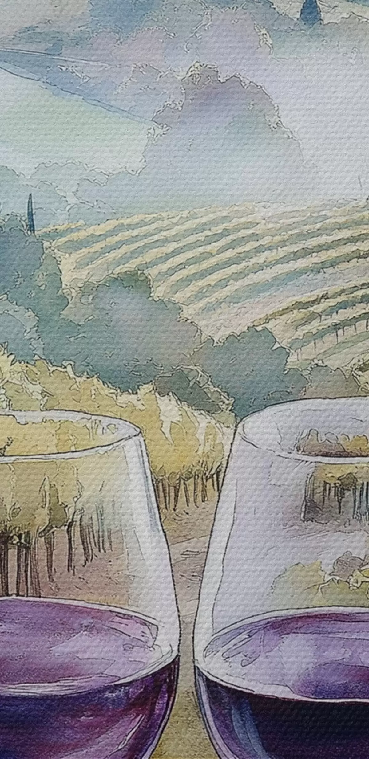 Glezna Akvareļu stila Toskānas ainavas, vīna pagalmi, vīnogas Nr s42440