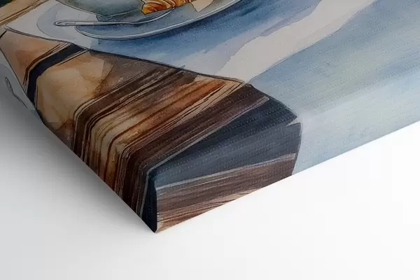 Glezna Vasaras ezers ar buru laivām, kafijas tasēm, kruasāniem, akvareļu stilā Nr s42441