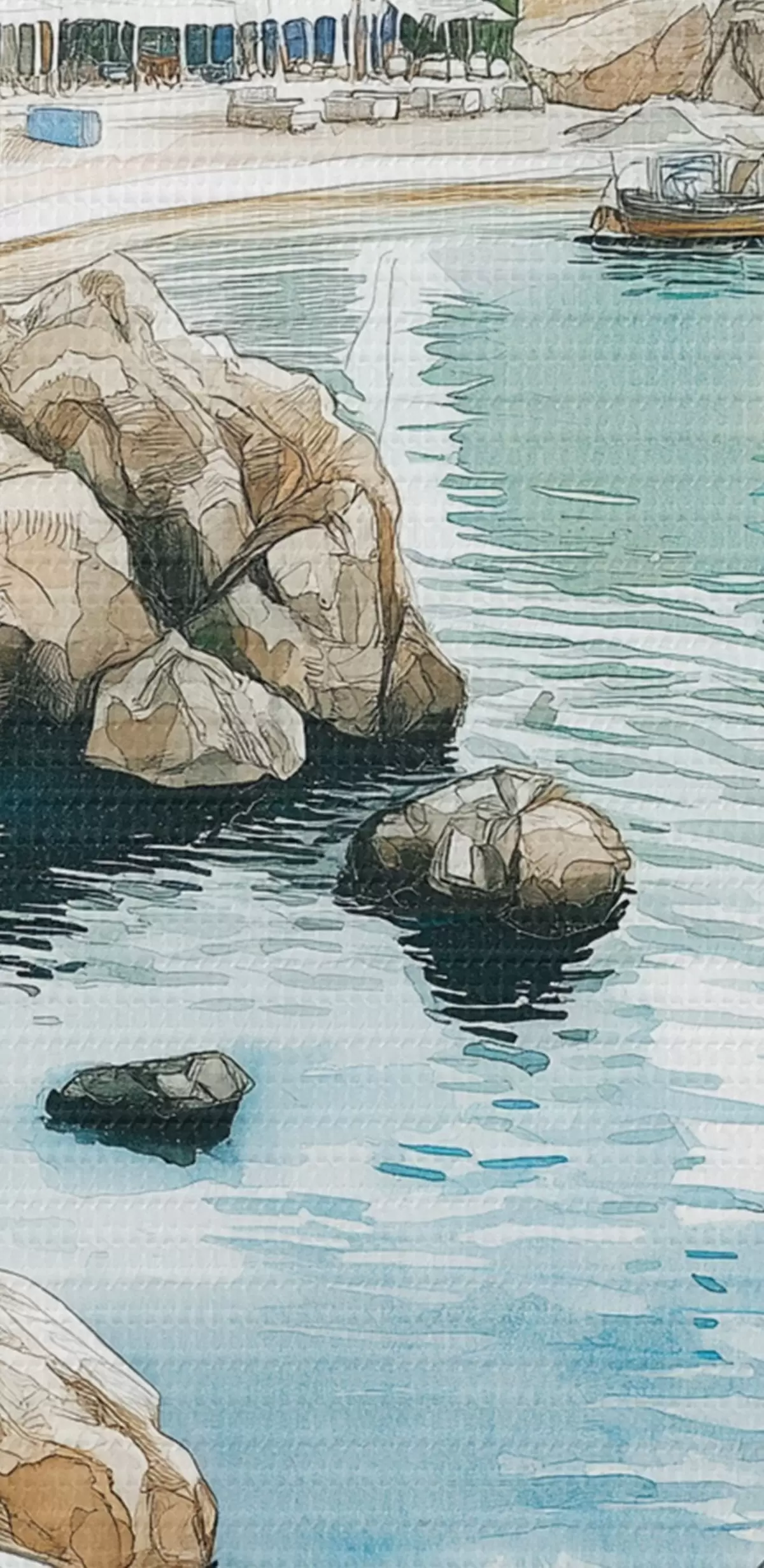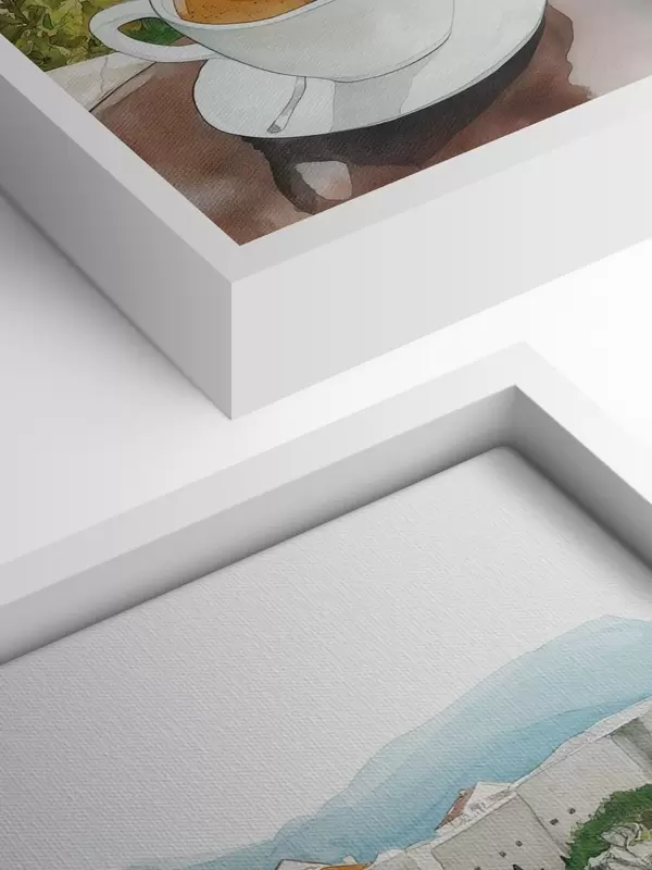 Glezna Kafijas tasītes jūras krastā, akvareļu stilā, Horvātija Nr s42448