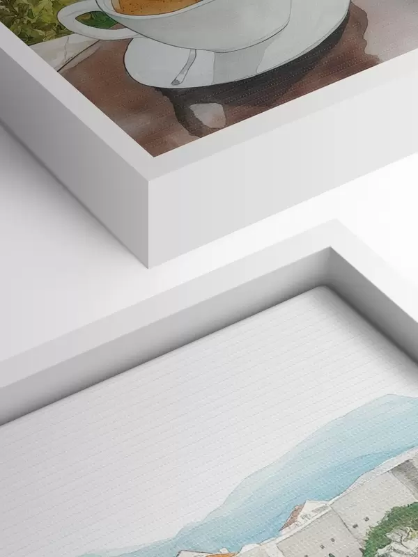 Glezna Kafijas tasītes jūras krastā, akvareļu stilā, Horvātija s42448
