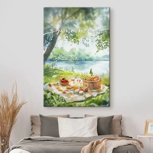 Glezna Piknika estētika, vasaras daba, ezers, romantisks, akvareļu stils Nr s42450