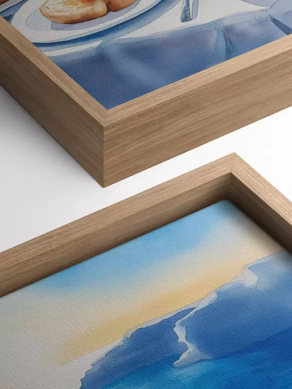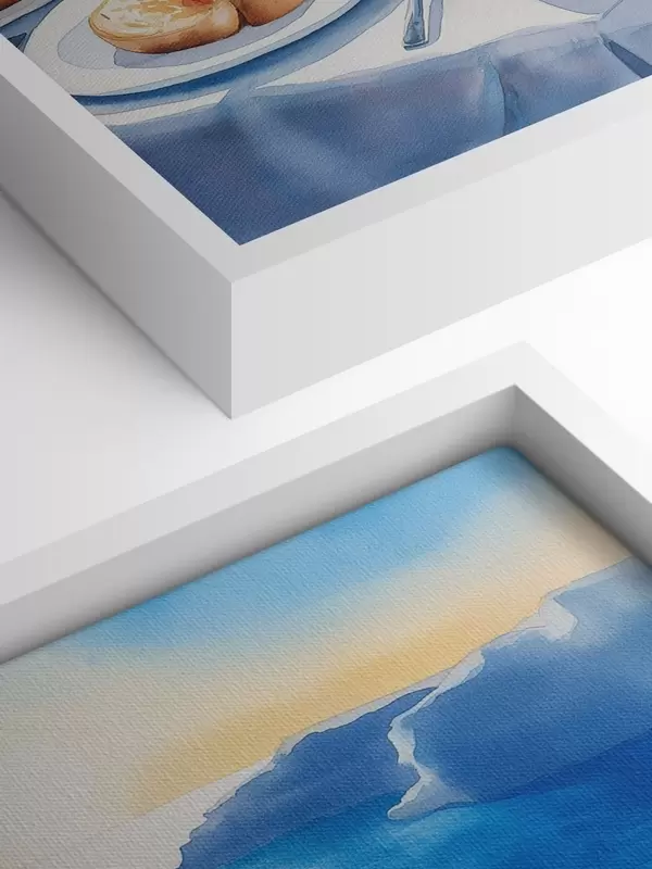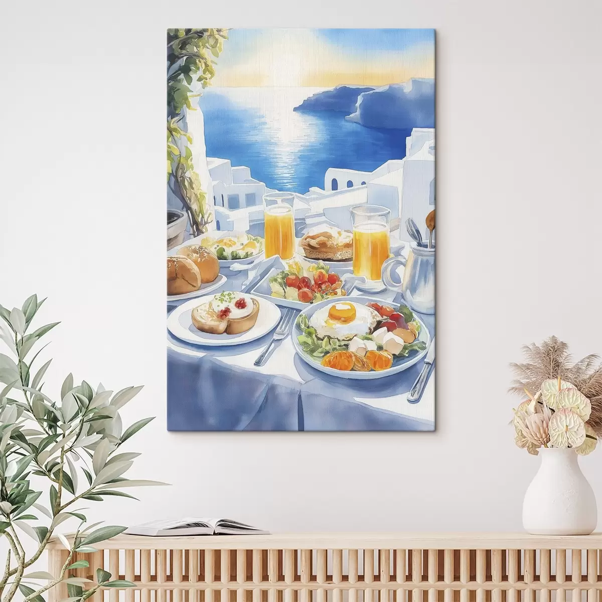 Glezna Santorini ainavas, brokastis, akvareļu stilā, vecpilsēta s42454