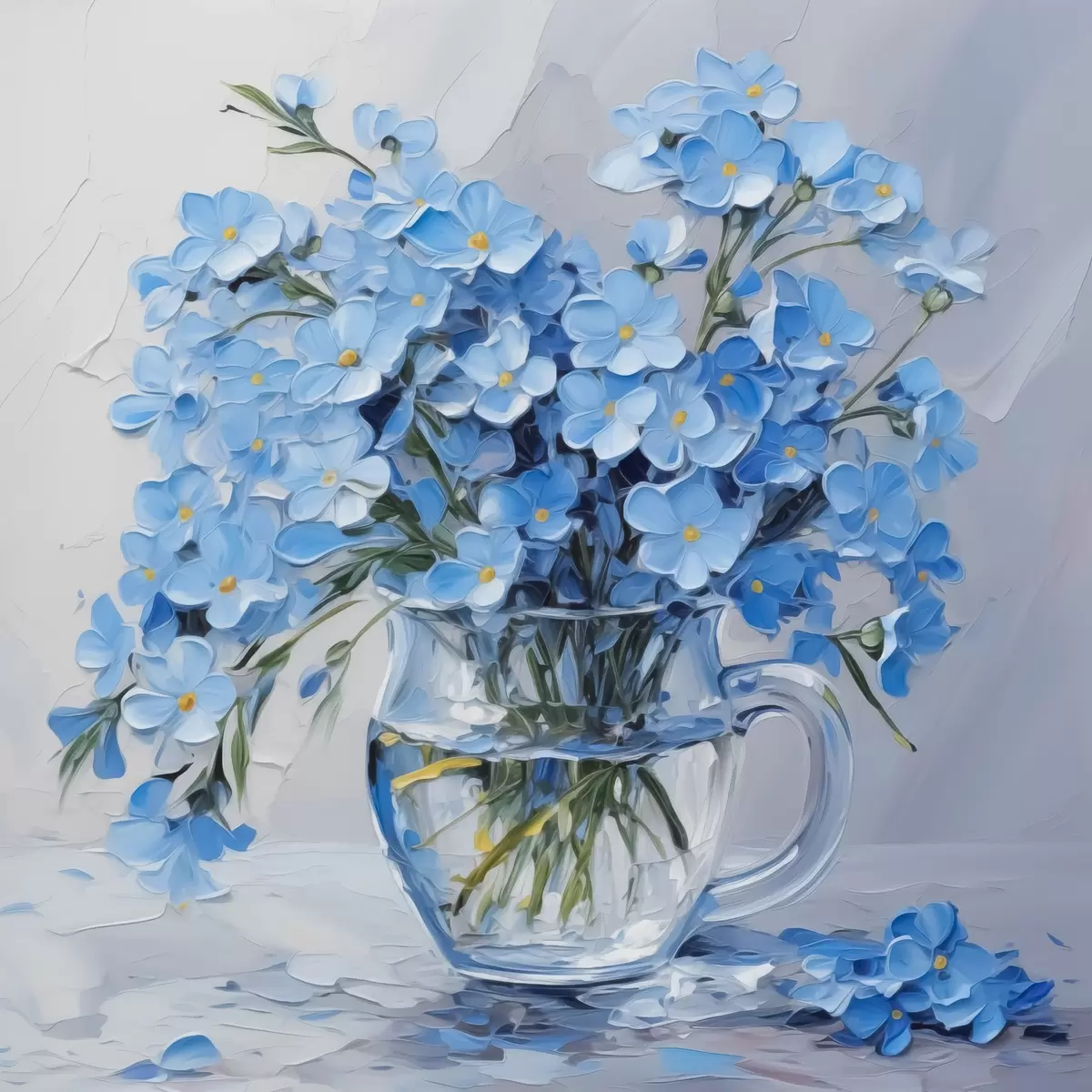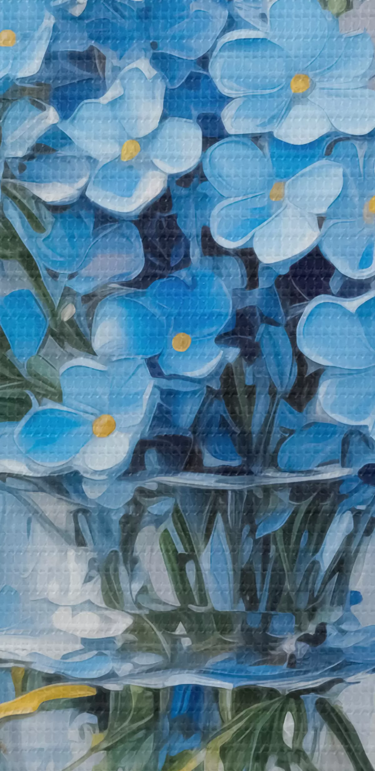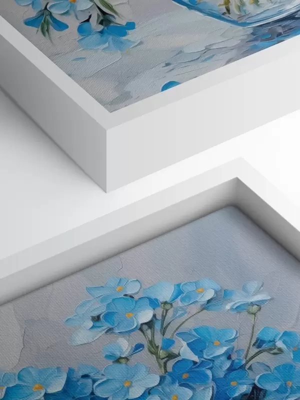 Glezna Zili ziedi caurspīdīgā vāzē, kas imitē glezniecību Nr s42467
