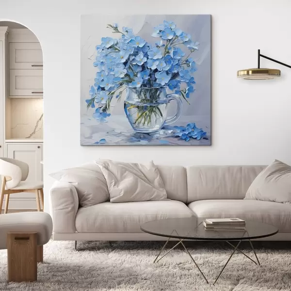 Glezna Zili ziedi caurspīdīgā vāzē, kas imitē glezniecību Nr s42467