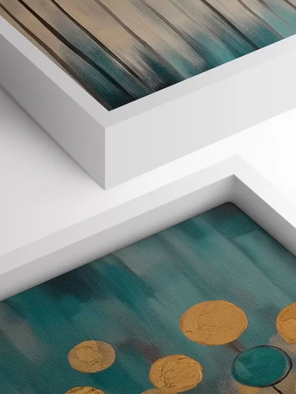 Glezna Dekoratīva abstrakcija ar apaļiem elementiem uz zila un bēša fona s42476