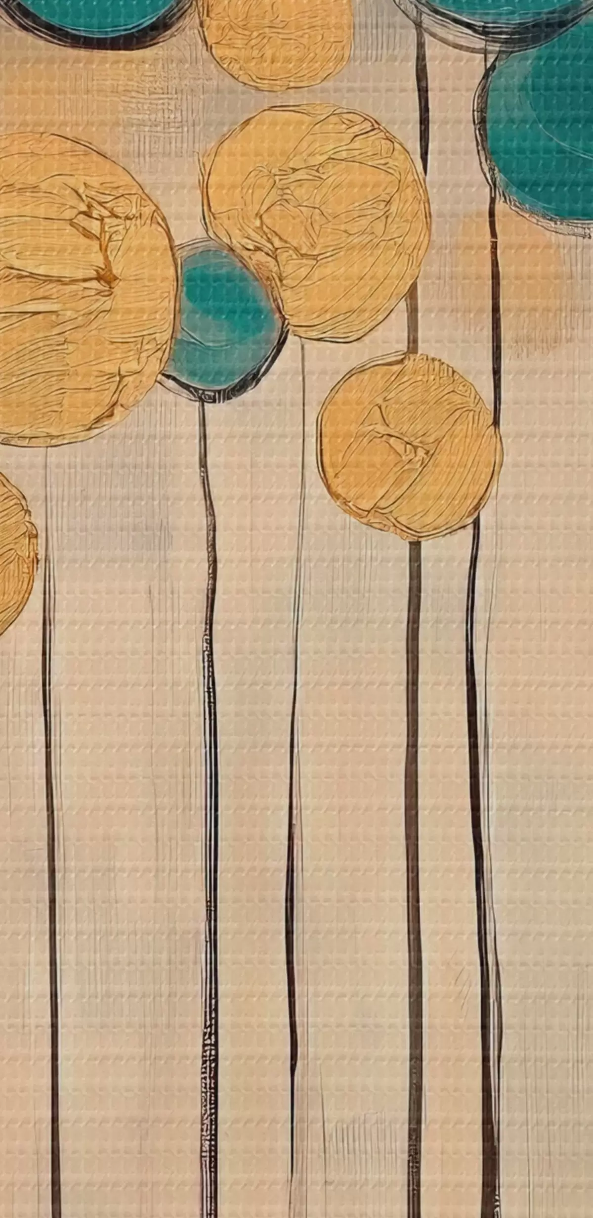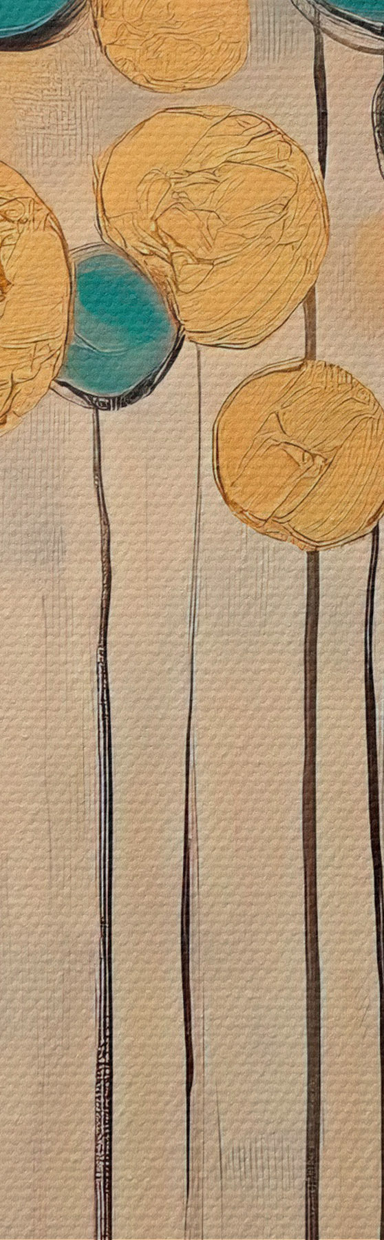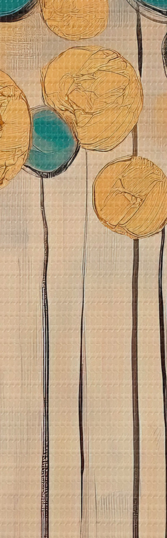 Glezna Dekoratīva abstrakcija ar apaļiem elementiem uz zila un bēša fona Nr s42476