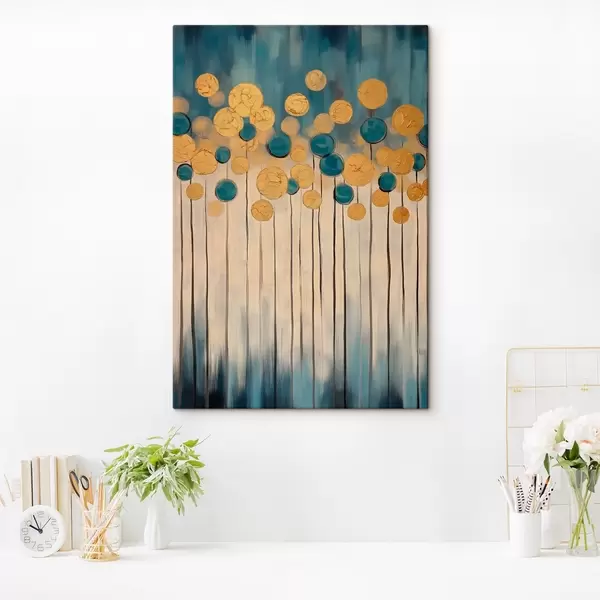 Glezna Dekoratīva abstrakcija ar apaļiem elementiem uz zila un bēša fona Nr s42476