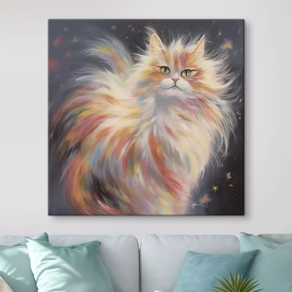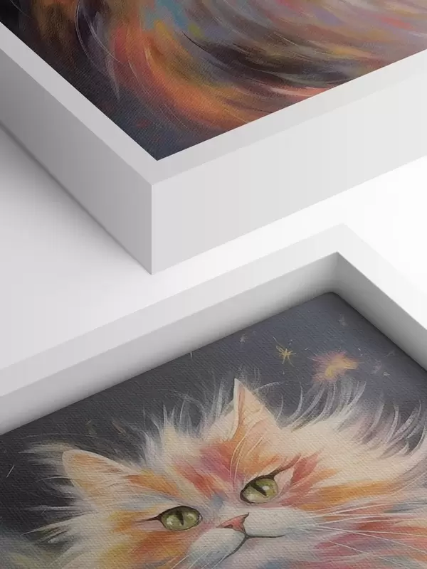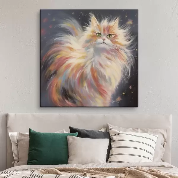 Glezna Pūkains kaķis ar krāsainu kažoku uz tumša fona Nr s42484