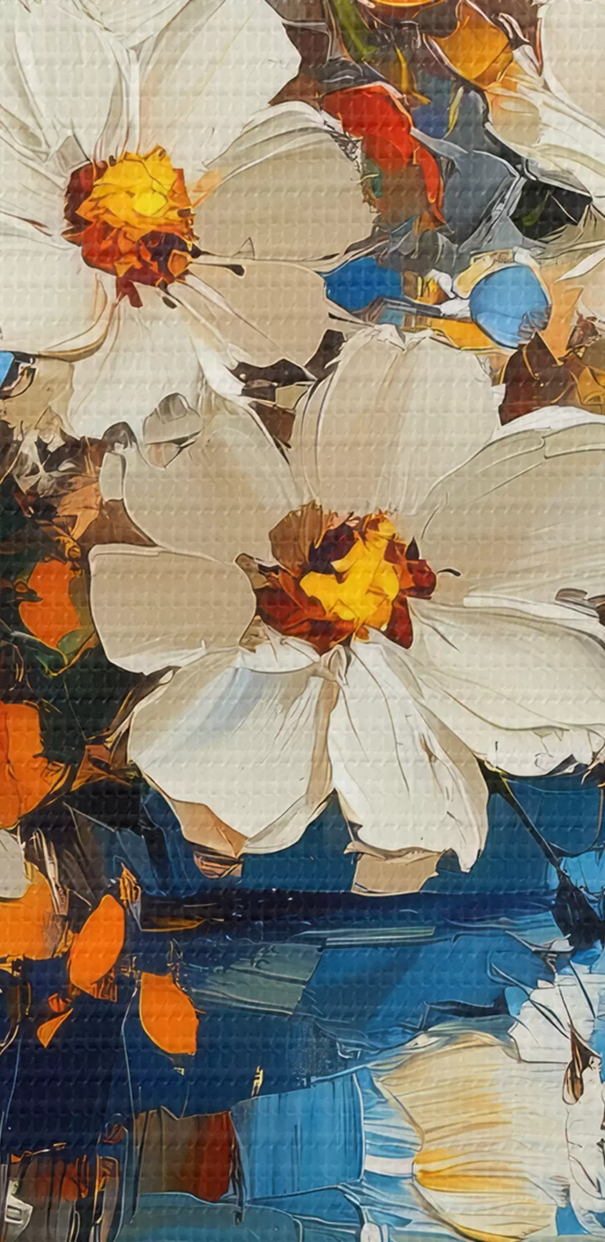Smalkais diegu pinums uz šī audekla atgādina profesionālu mākslinieku audeklu virsmu.