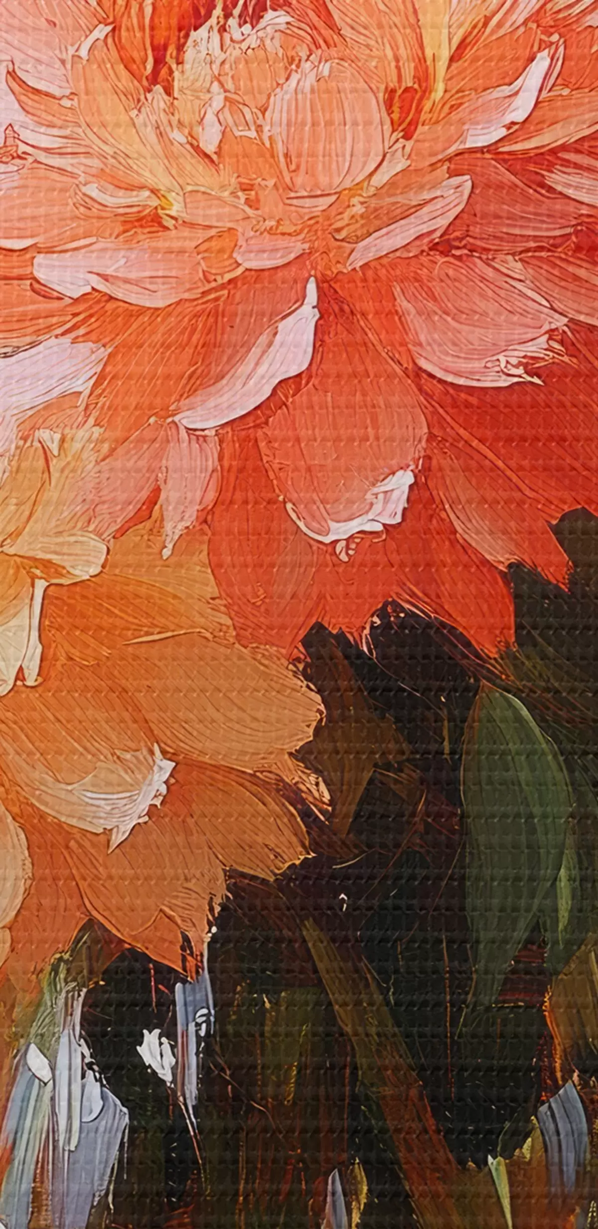 Smalkais diegu pinums uz šī audekla atgādina profesionālu mākslinieku audeklu virsmu.