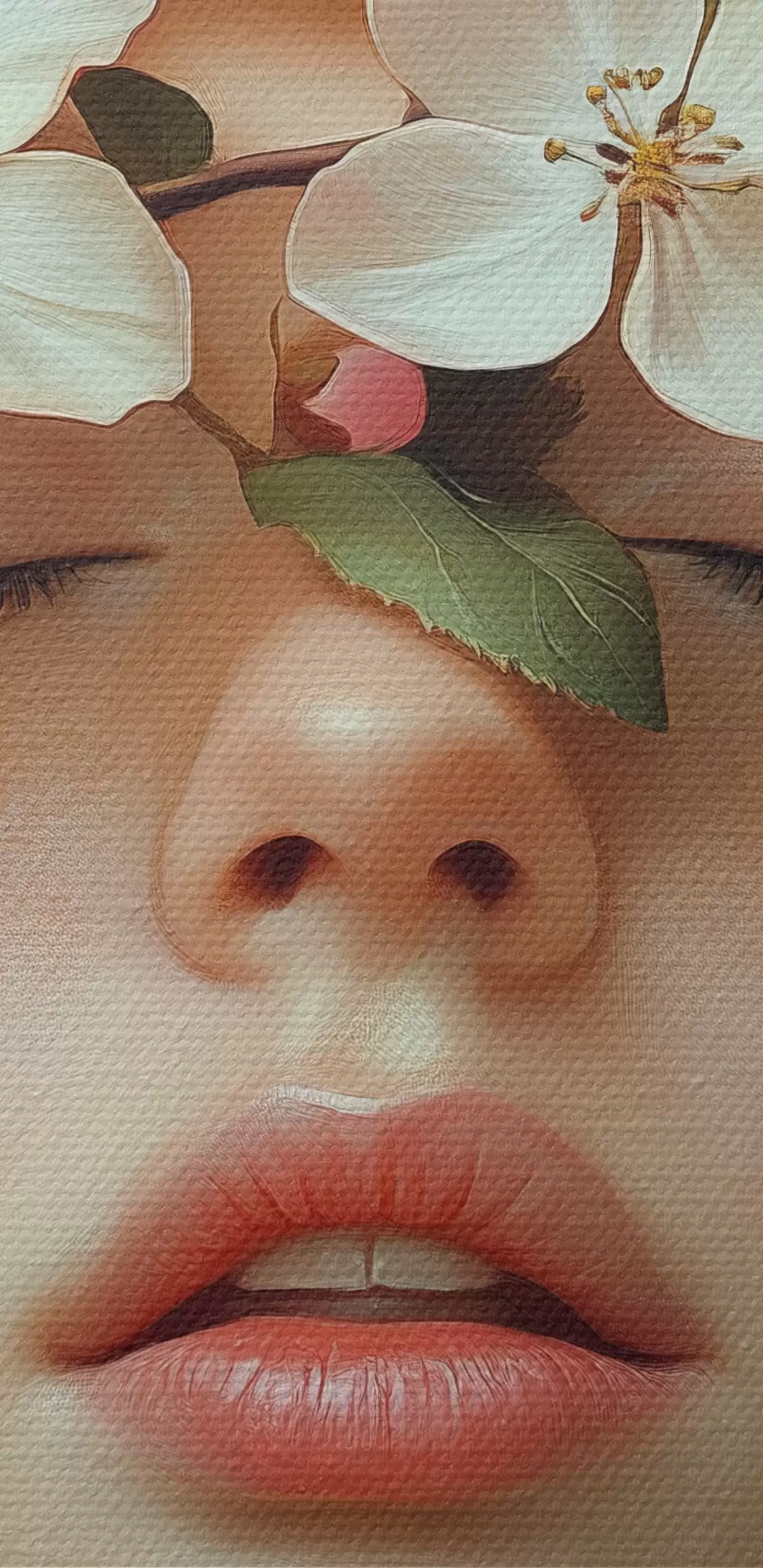 Glezna Meitenes portrets ar ziediem uz sejas Nr s42506