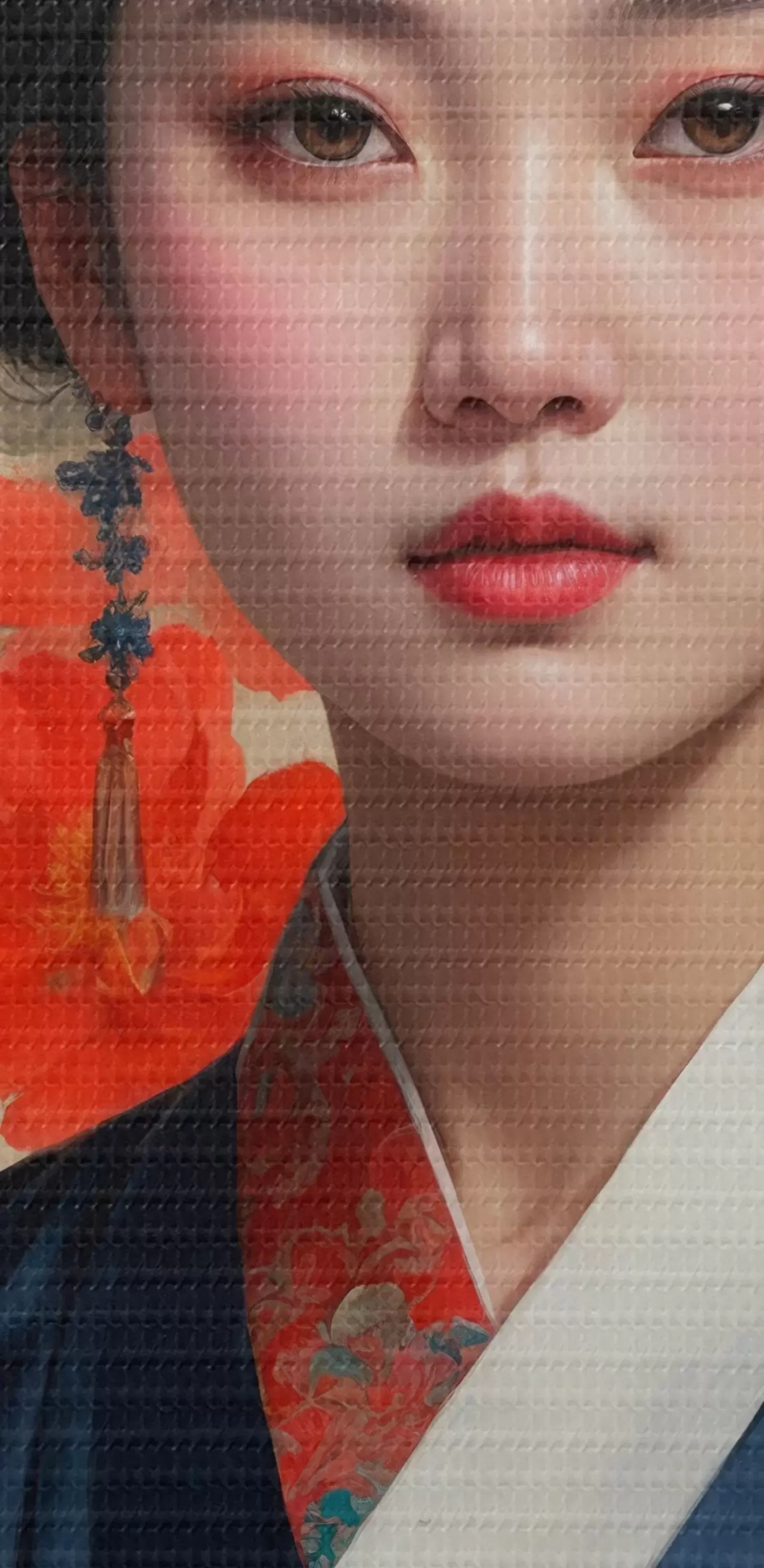 Smalkais diegu pinums uz šī audekla atgādina profesionālu mākslinieku audeklu virsmu.