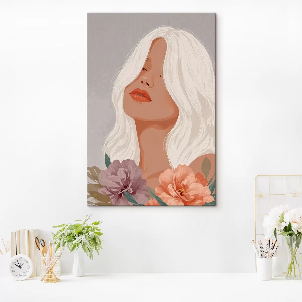 Glezna Meitene uz pelēka fona vektoru grafikā Nr s42521