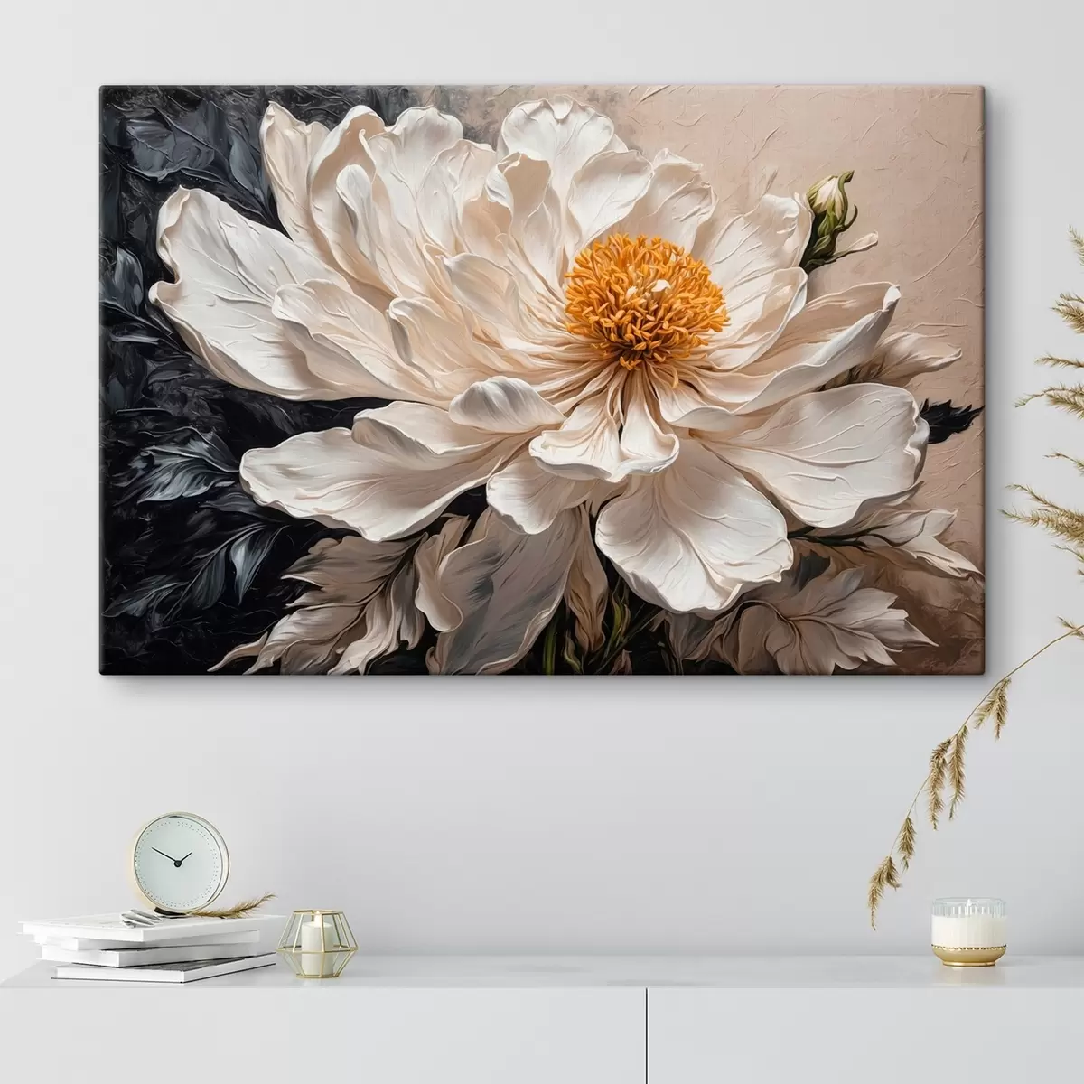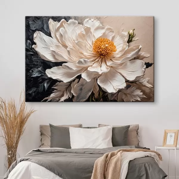Glezna Balts zieds uz melna un bēša fona Nr s42522