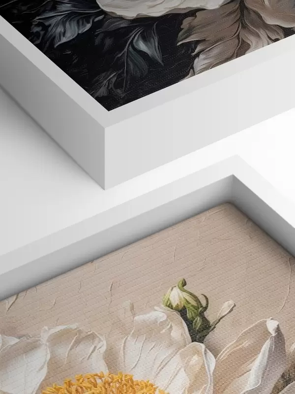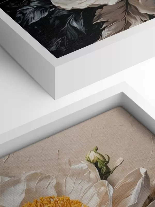 Glezna Balts zieds uz melna un bēša fona s42522