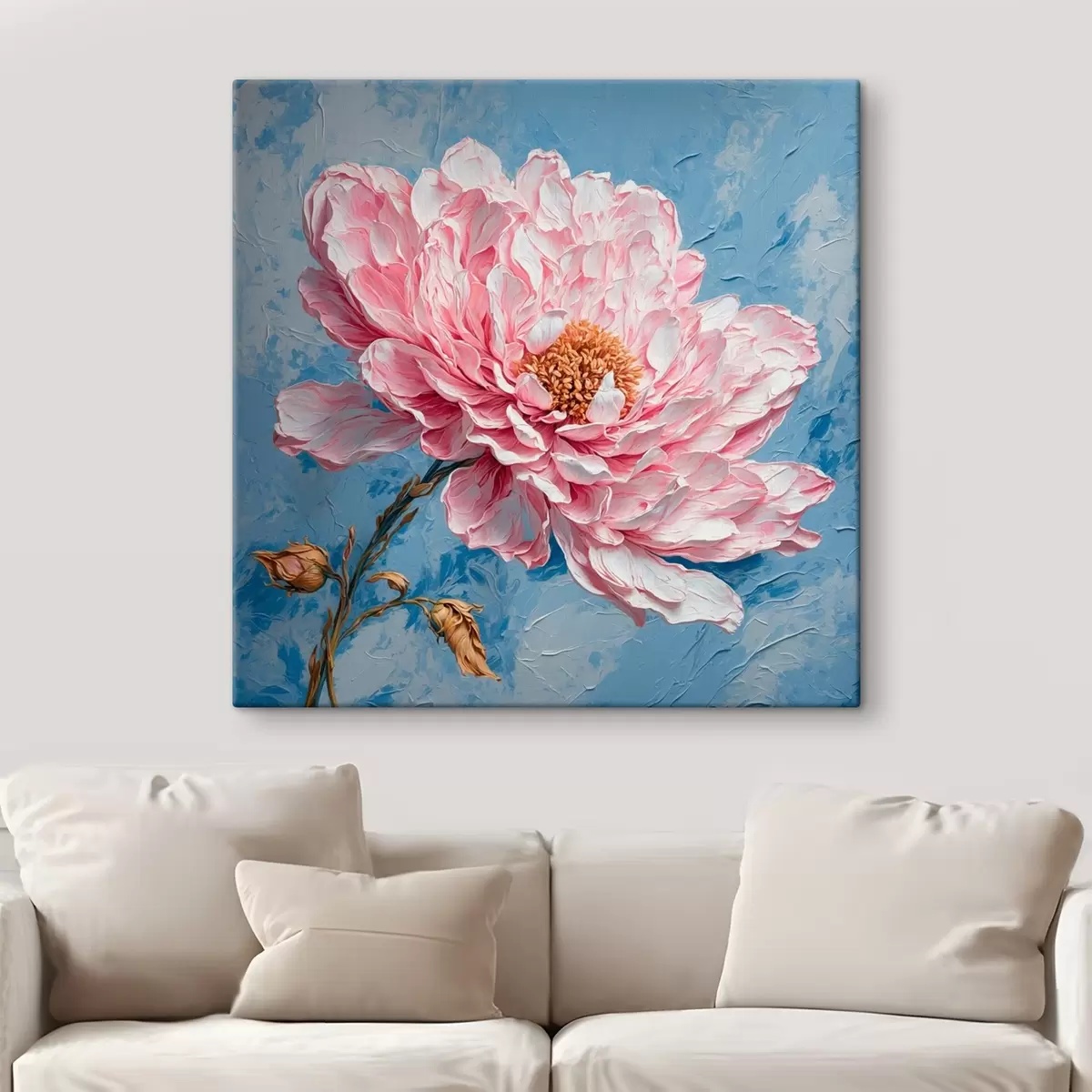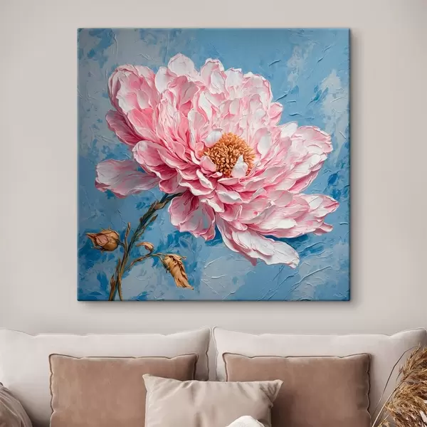 Glezna Rozā ziedu uz zila fona eļļas glezna stilā s42537