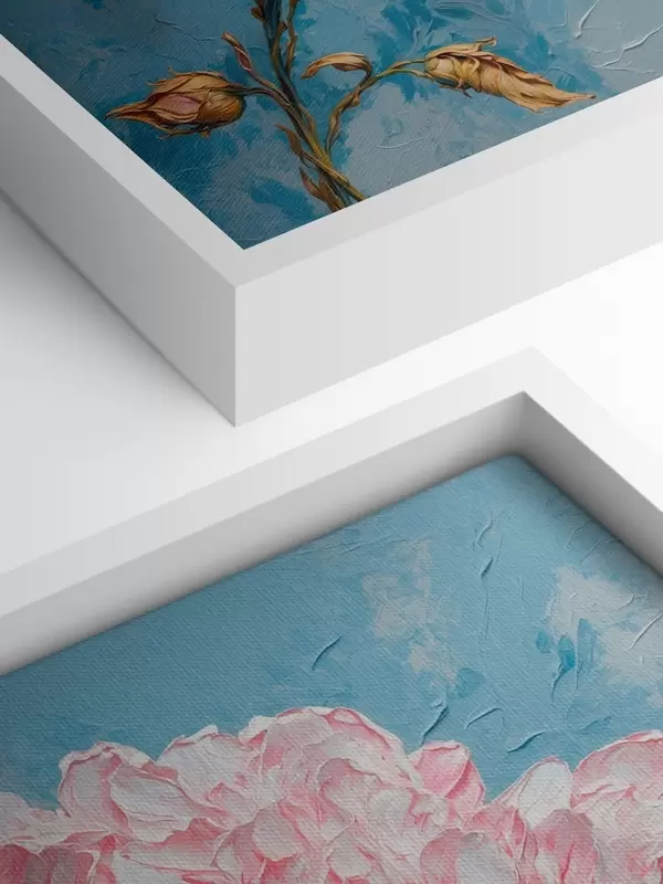 Glezna Rozā ziedu uz zila fona eļļas glezna stilā Nr s42537