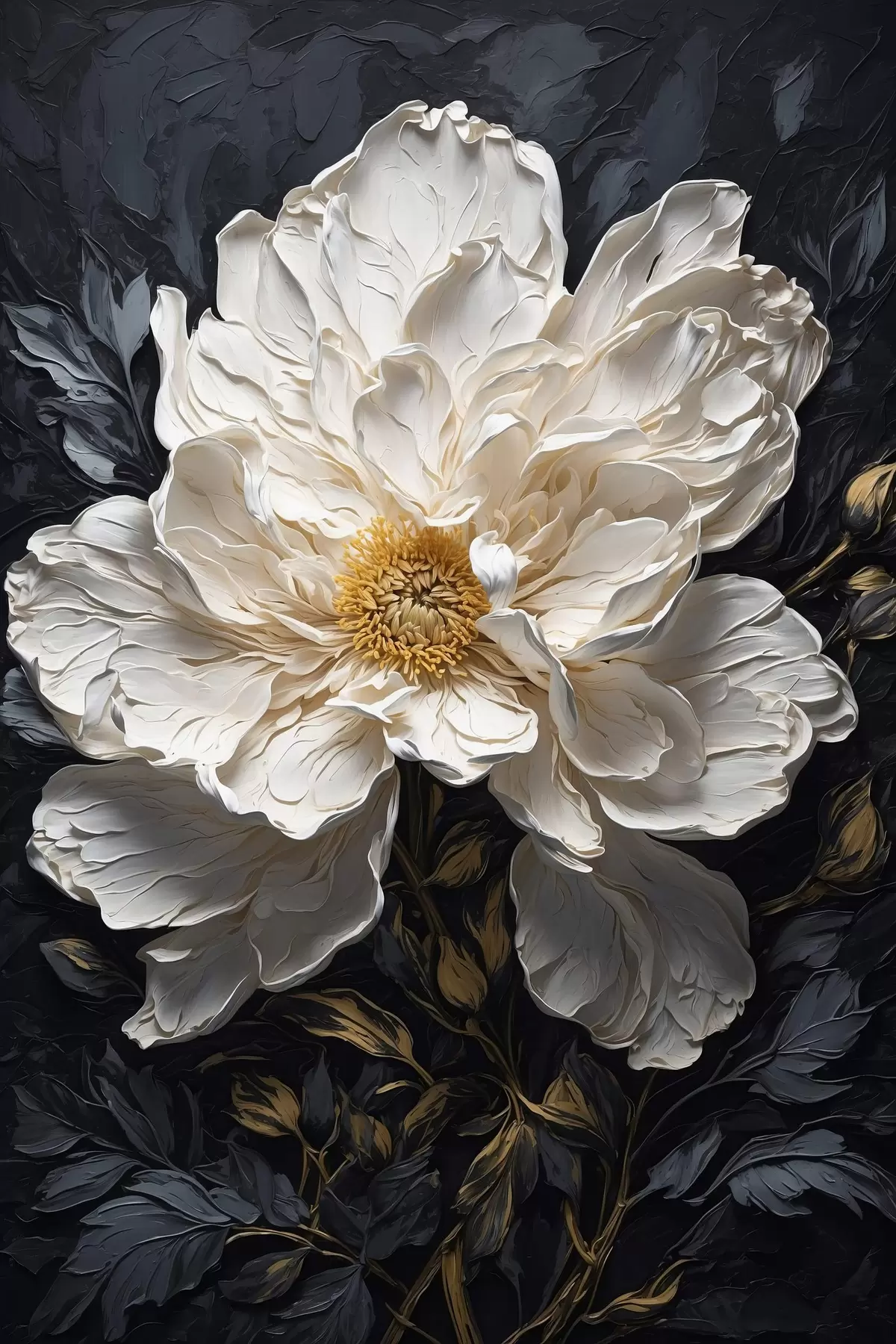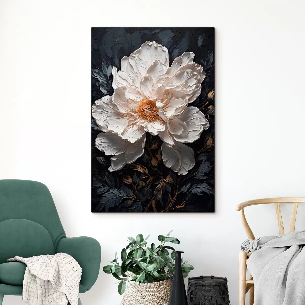 Glezna Balts zieds uz melna fona eļļas glezna stilā s42544
