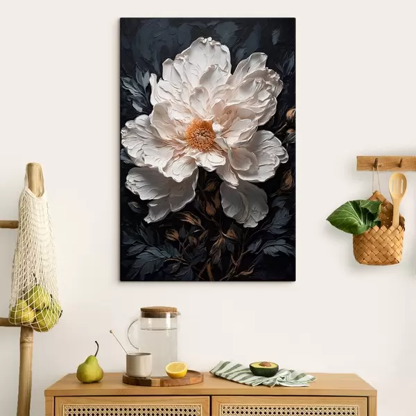 Glezna Balts zieds uz melna fona eļļas glezna stilā s42544