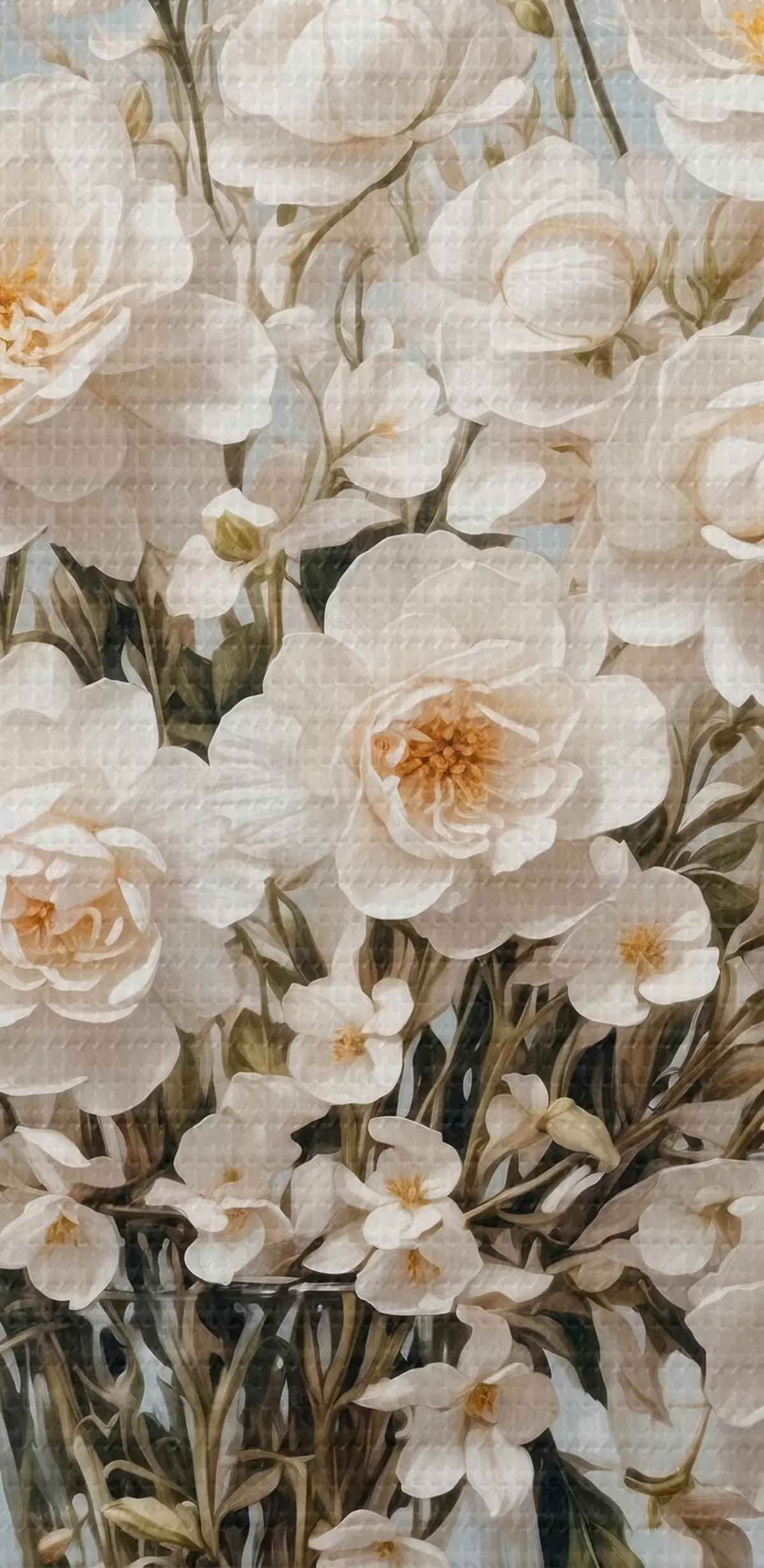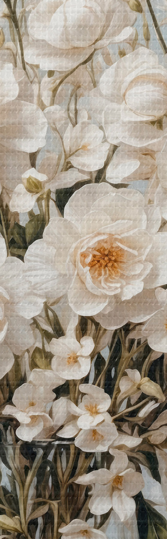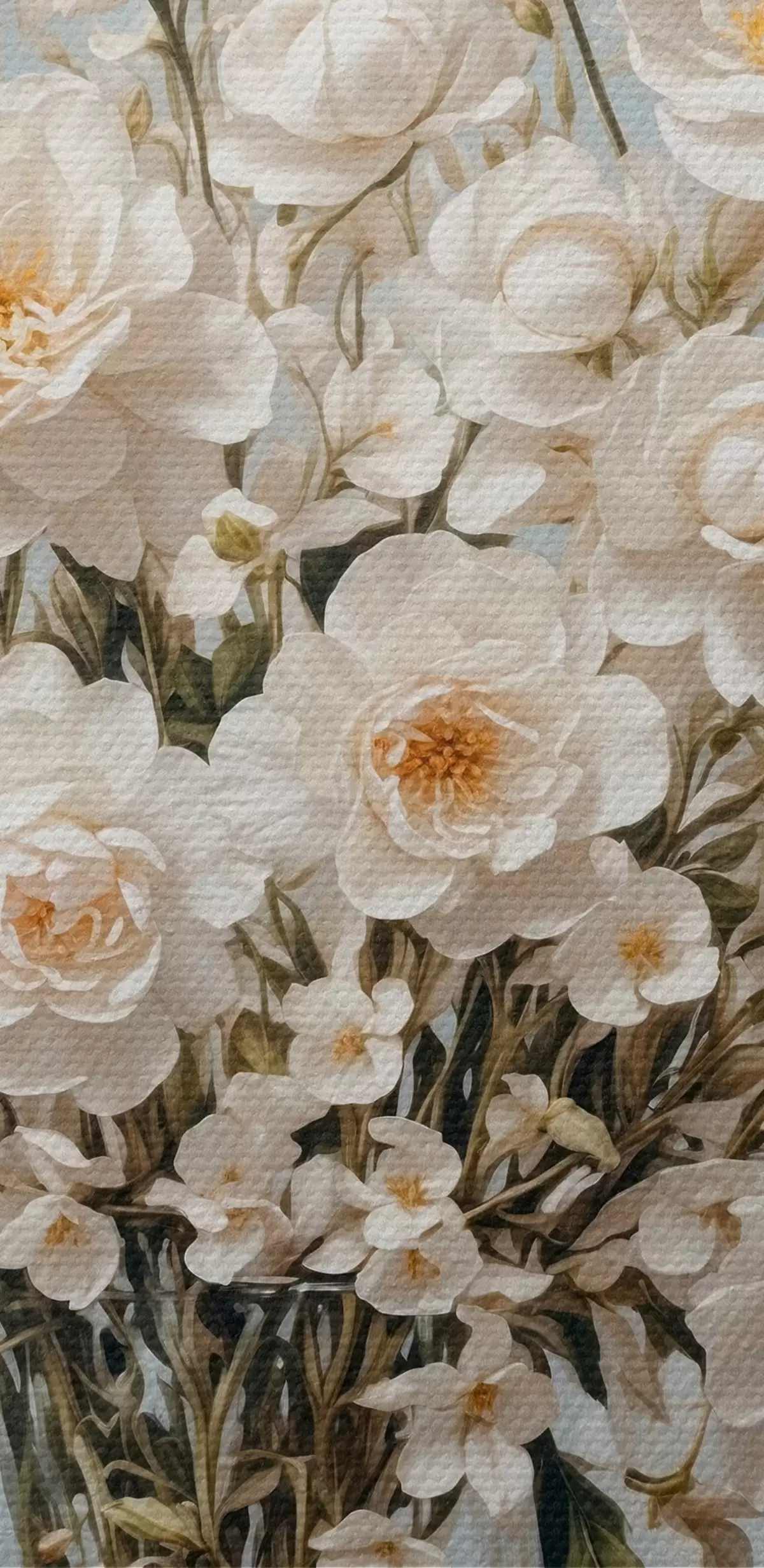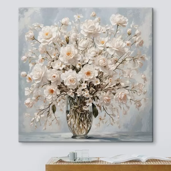 Glezna Balti ziedi caurspīdīgā vāzē akrila glezniecības stilā Nr s42545