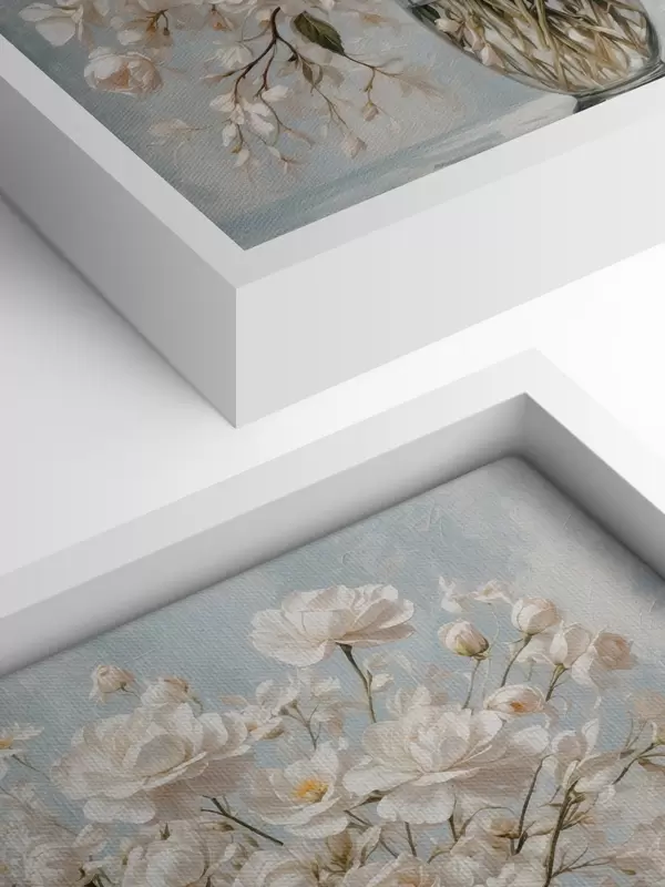 Glezna Balti ziedi caurspīdīgā vāzē akrila glezniecības stilā s42545