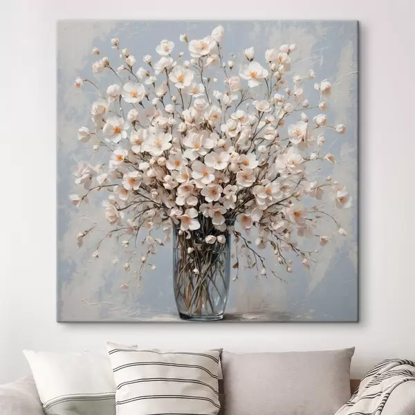 Glezna Balti ziedi caurspīdīgā vāzē Nr s42547