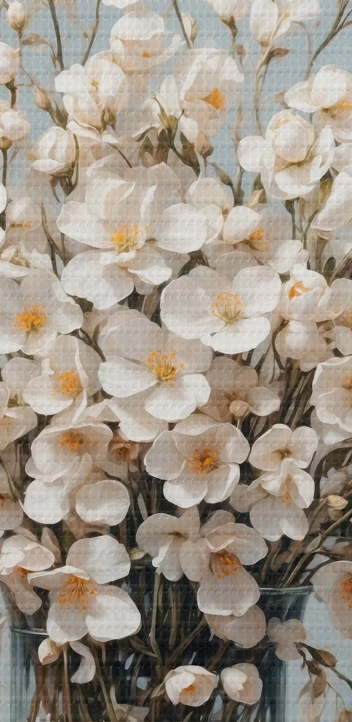 Glezna Balti ziedi caurspīdīgā vāzē s42547