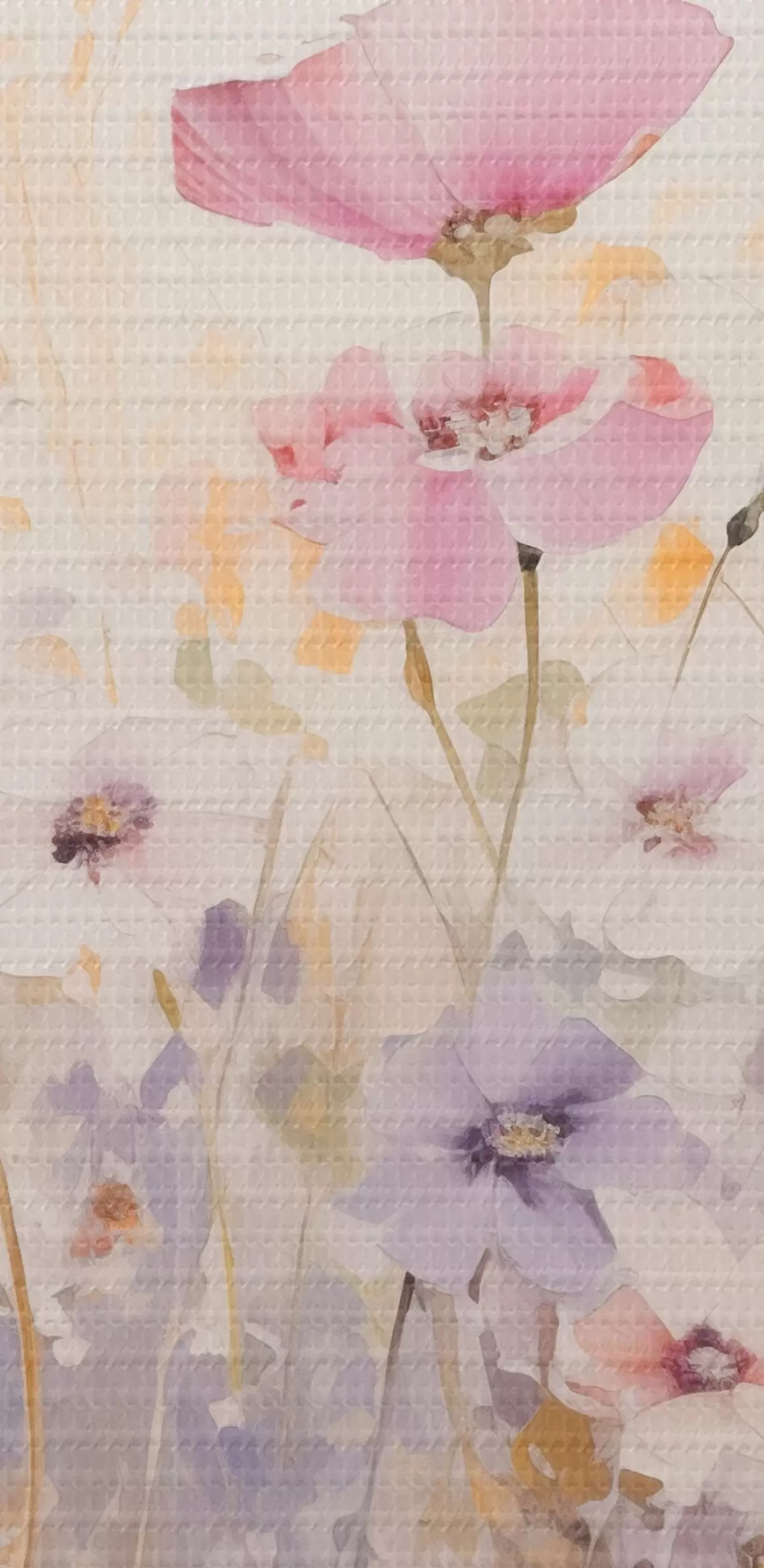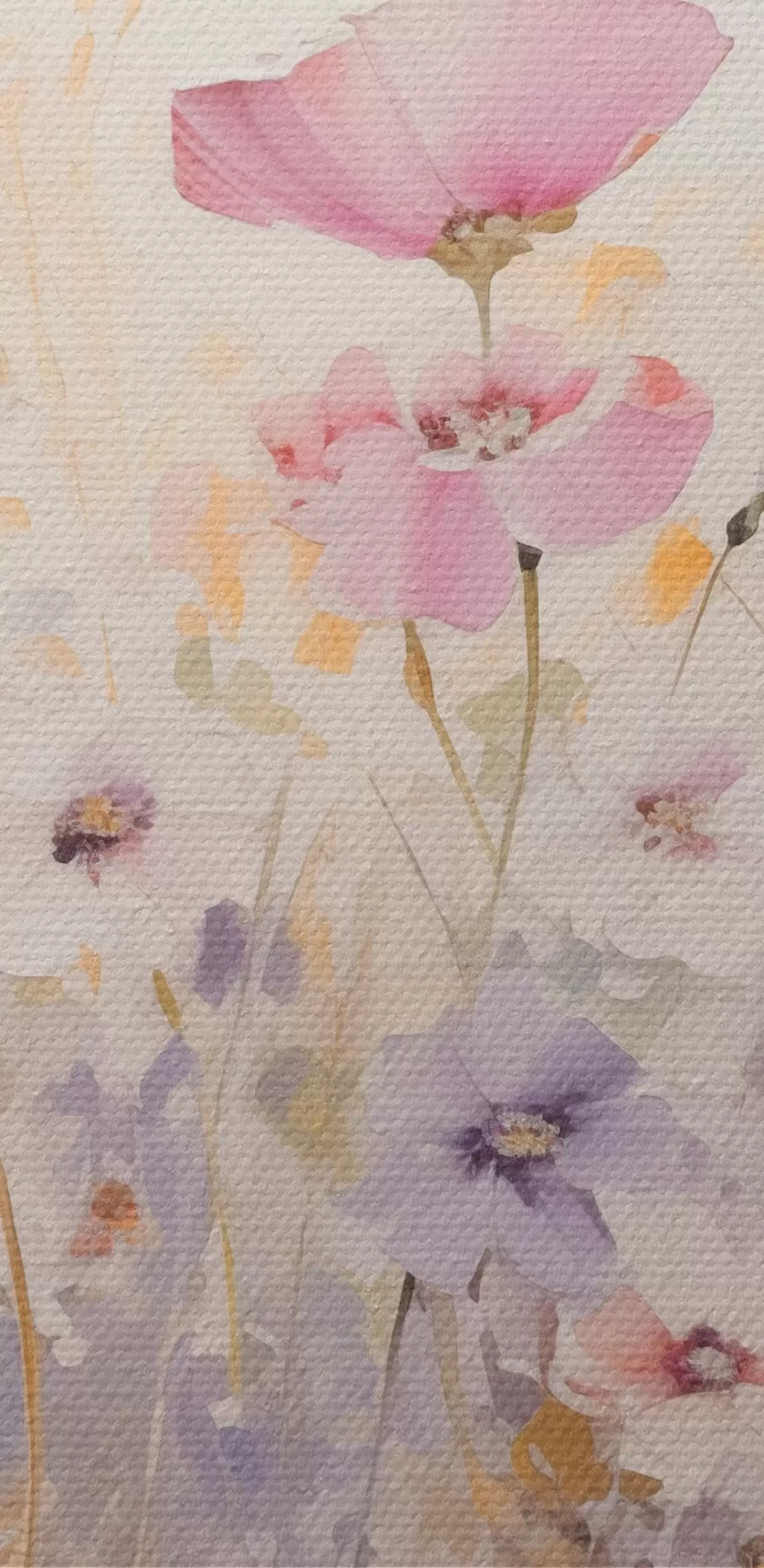 Glezna Pļava ar akvareļu ziediem maigos rozā, violetos un baltos toņos, kas rada viegluma un harmonijas atmosfēru. s42557