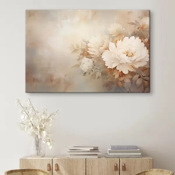 Glezna Delikātas peonijas pasteļkrēma toņos uz izplūduša fona, kas rada maigu un romantisku noskaņu. s42558