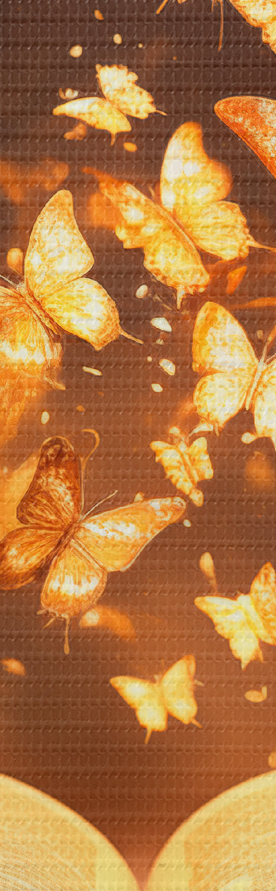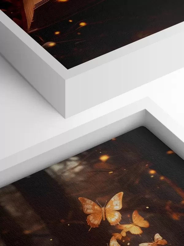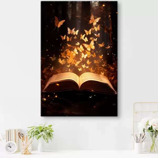 Glezna Atvērta grāmata, no kuras tumšā, maģiskā mežā gaismas stariem mirdz gaismas tauriņi. Nr s42573