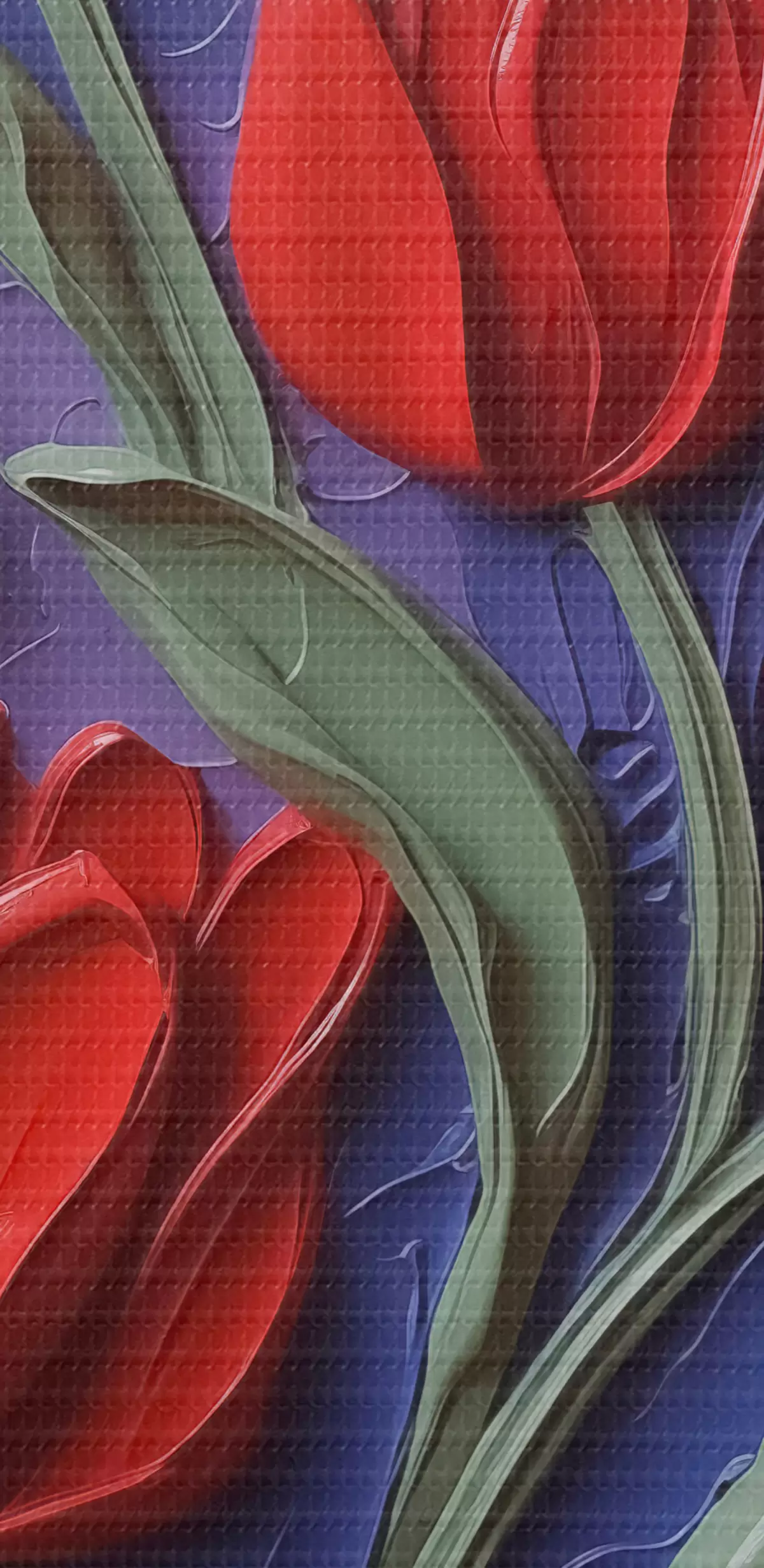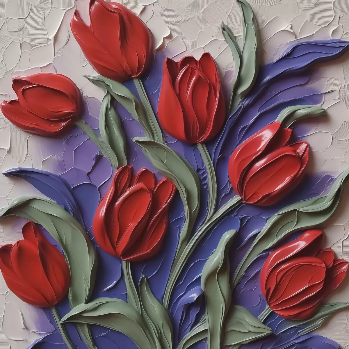 Glezna Sarkanās tulpes uz violetas otas triepienu imitācijas Nr s42584